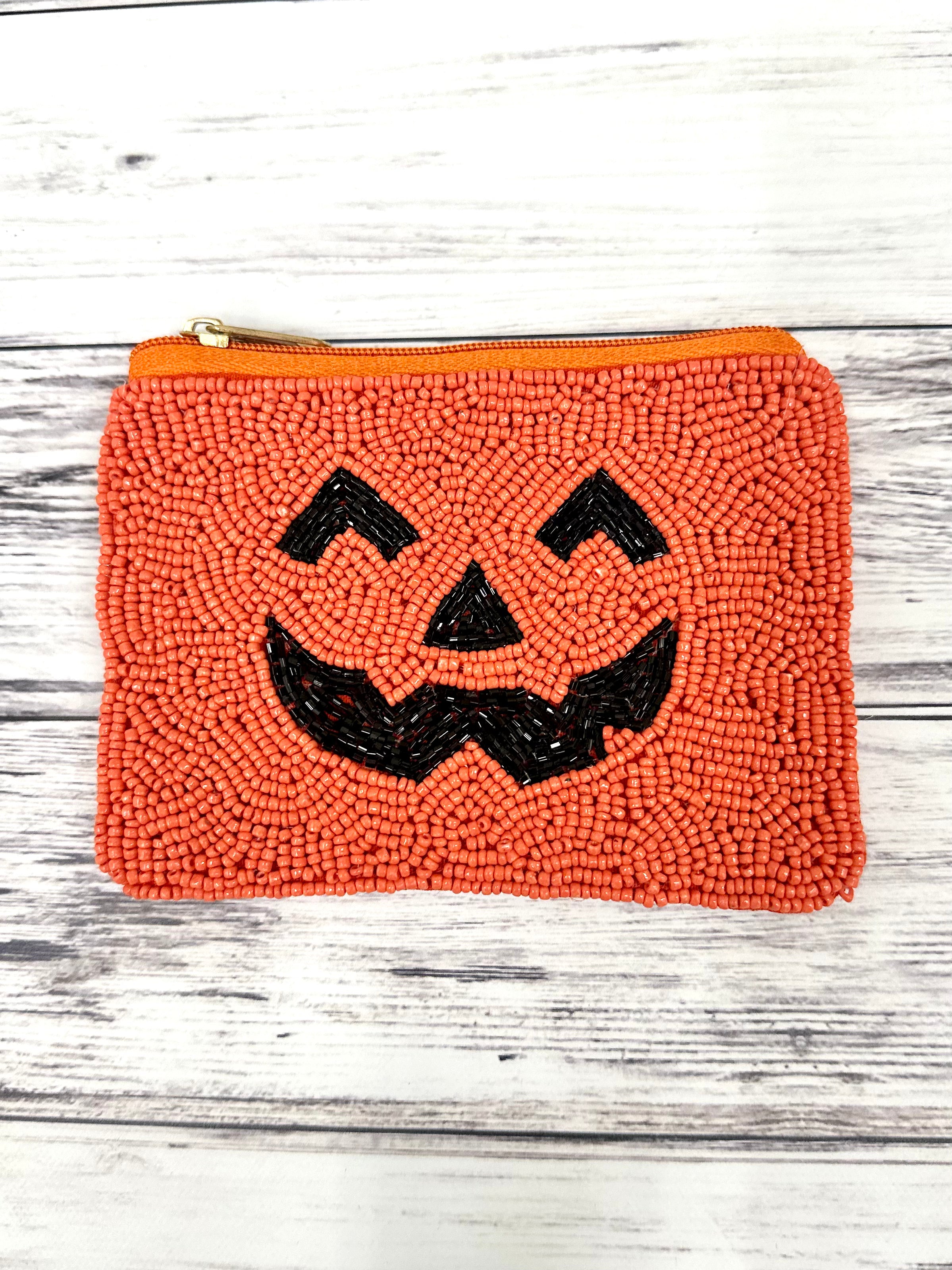 Get in the spooky spirit with these adorable beaded Jack-O-Lantern coin purse.