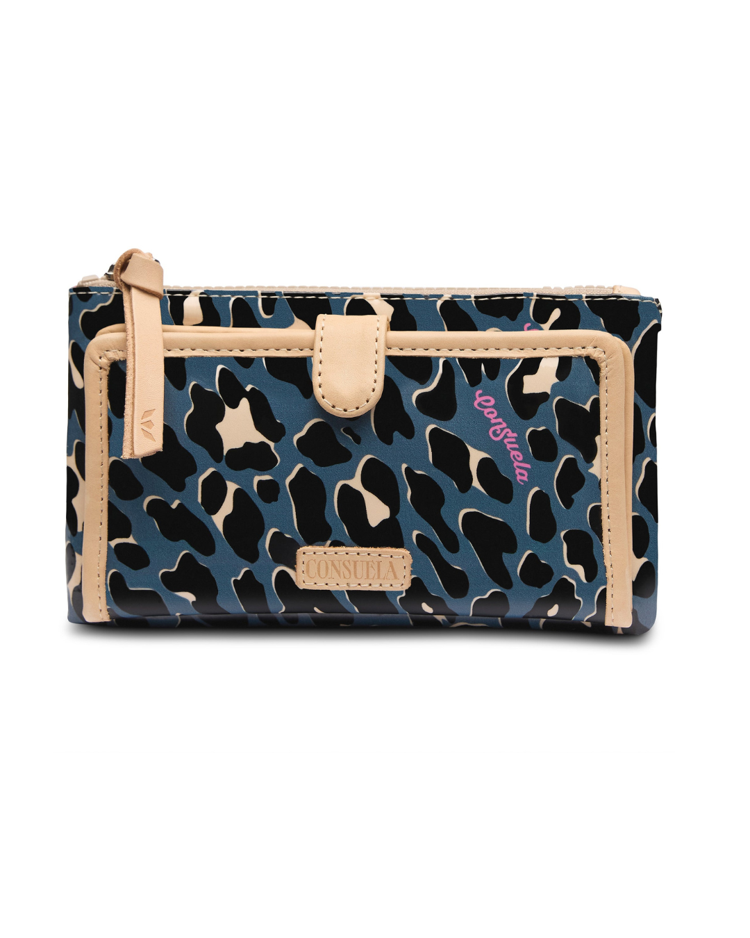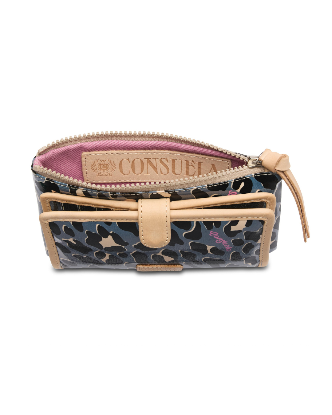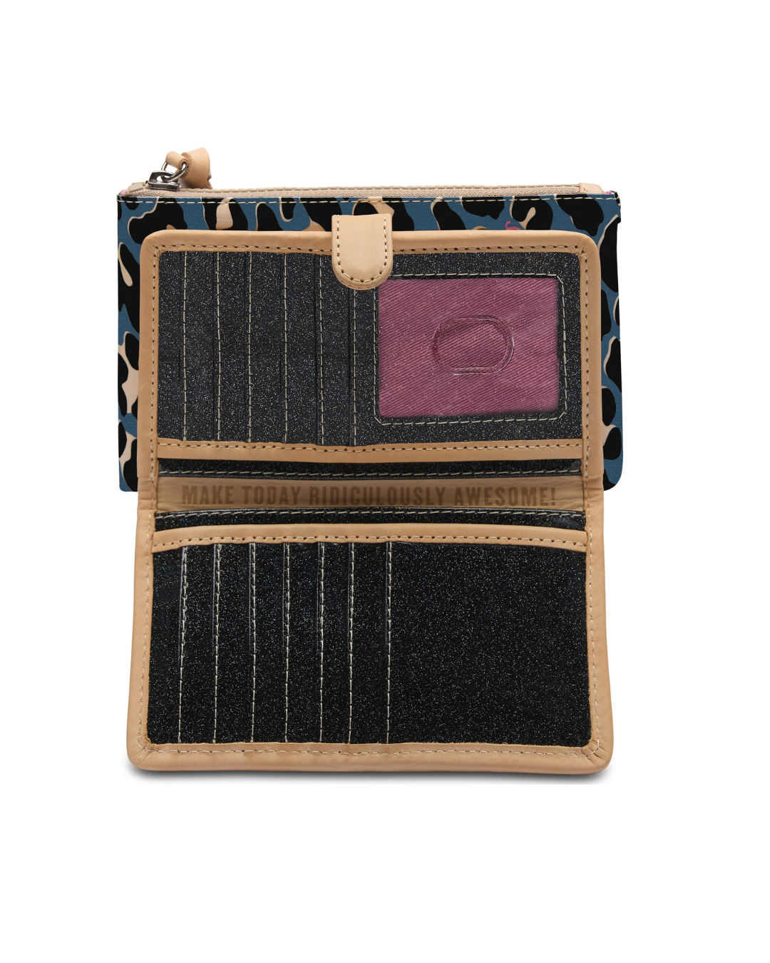Our Slim Wallet carries cards and cash without weighing you down. Open the snap closure to reveal an ID window pocket, 12 card slots, and 4 slide pocket compartments in this versatile and colorful wallet.