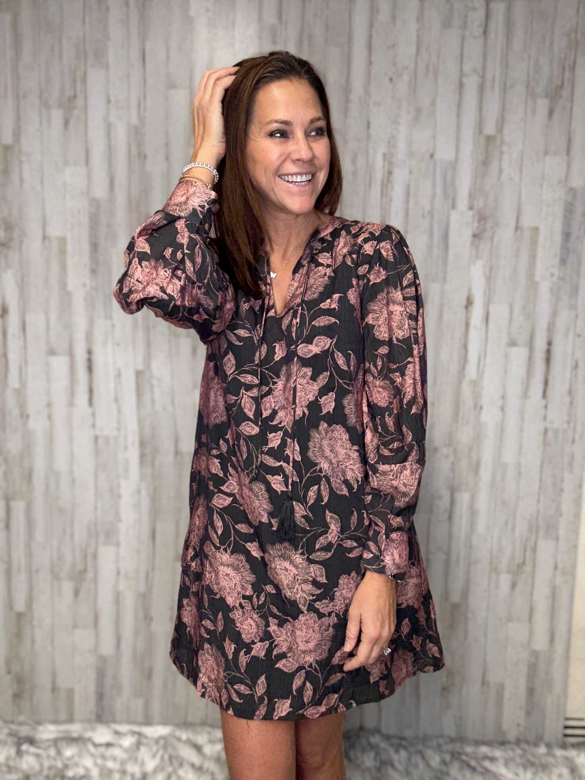 Step into effortless charm with the Salem Floral Dress. This playful lined peasant dress features long sleeves with buttoned cuffs and a flirty front tassel tie for a touch of whimsy. Practical side pockets keep your essentials close while the comfortable button closure on the wrists adds a sweet detail. Perfect for sunny days or breezy evenings, this dress brings vibrant floral fun to your wardrobe.
