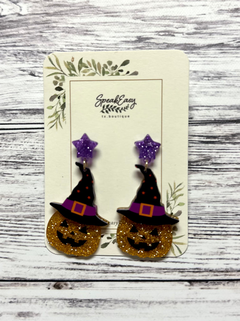 Jack-O-Lantern Witch Earrings