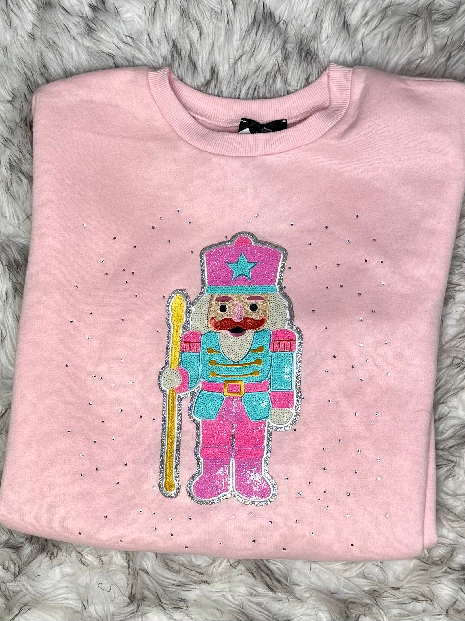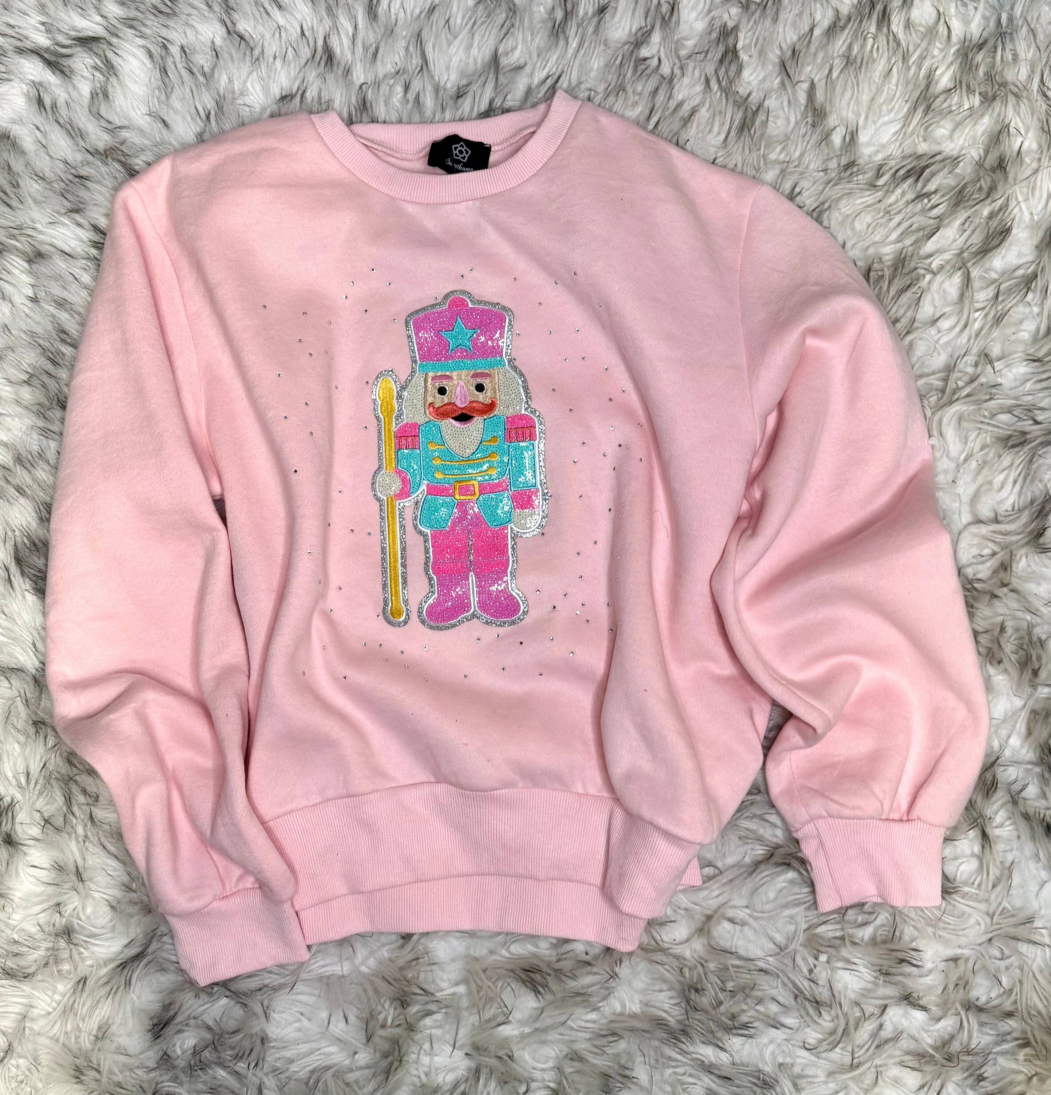 Elevate your seasonal wardrobe with this sophisticated nutcracker sweatshirt, featuring delicate embellishments that capture the timeless elegance of holiday tradition. The soft pink hue offers a refined alternative to classic winter neutrals, while intricate detailing brings understated glamour to everyday wear. Perfect for those who appreciate subtle luxury and festive charm in equal measure.