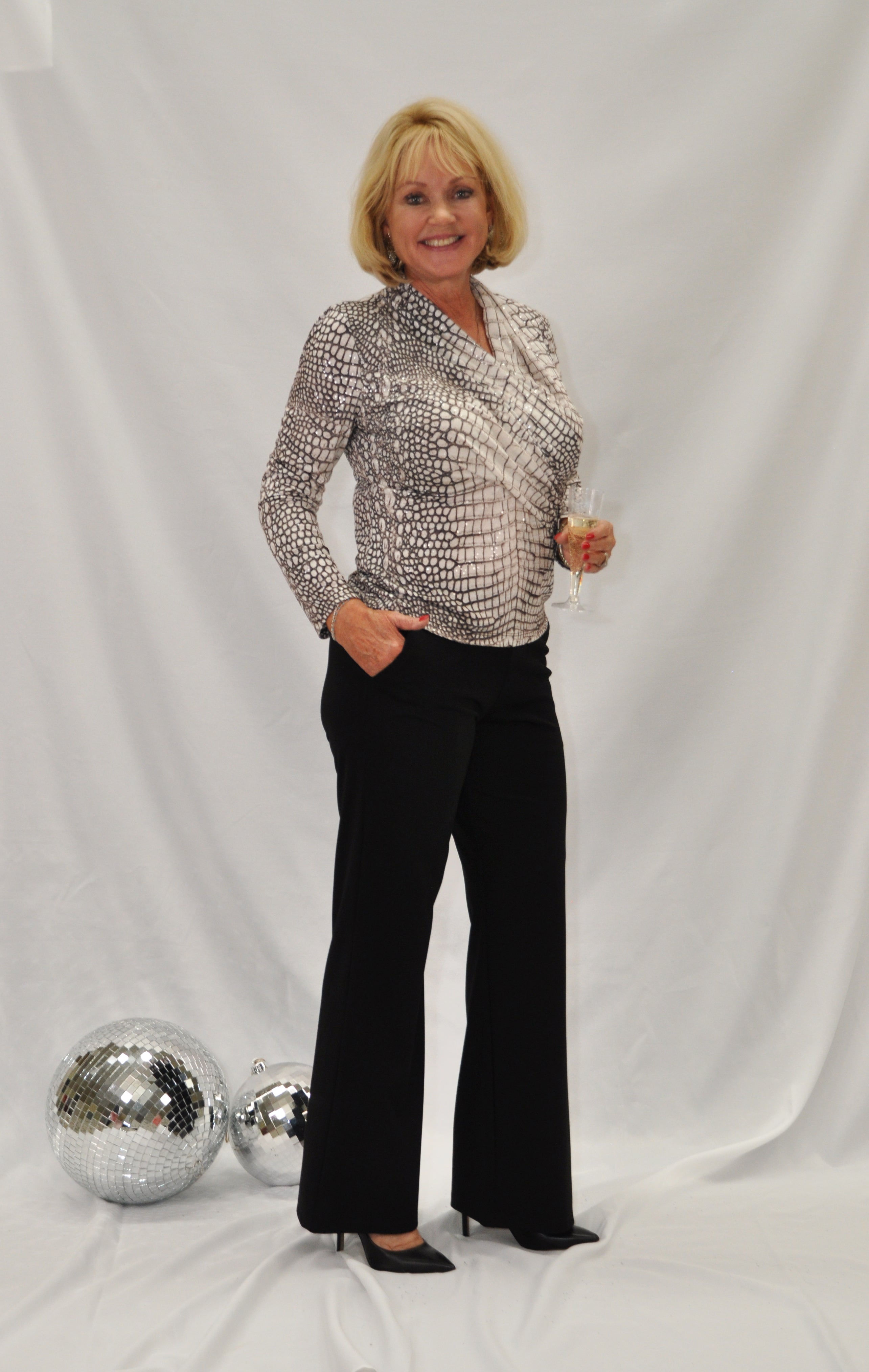 Indulge in the All Night Long Shimmer Top - a fierce croc scale patterned piece that is both flattering and comfortable. With wrinkle-free and travel-friendly capabilities, this ultra lightweight top boasts a breathable, jersey-like feel. Sink your teeth into its v-neckline with draped pleat detail and flatter your figure with its straight hemline.