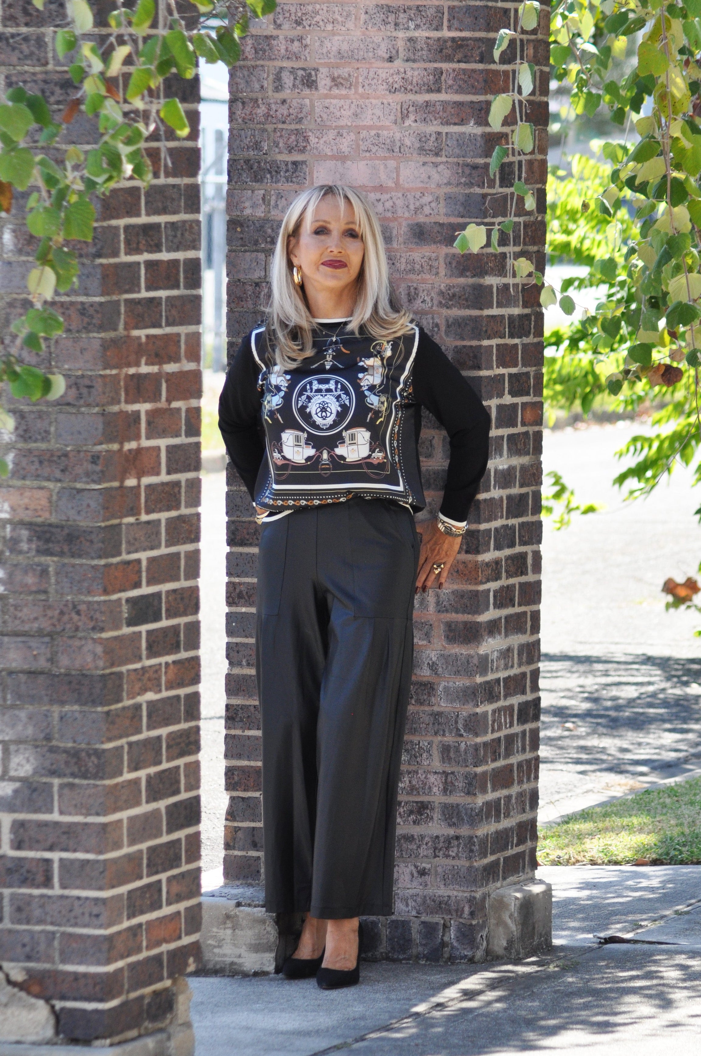 Our Liquid Black Leather Sheen Pleated Wide Leg Pocket Pant embodies the perfect combination of edge and sophistication! Featuring a loose-fitting wide-leg silhouette, 1.5” pull-on waistband, and side pockets with gorgeous front and back pleated details, designed to naturally flow against the body.