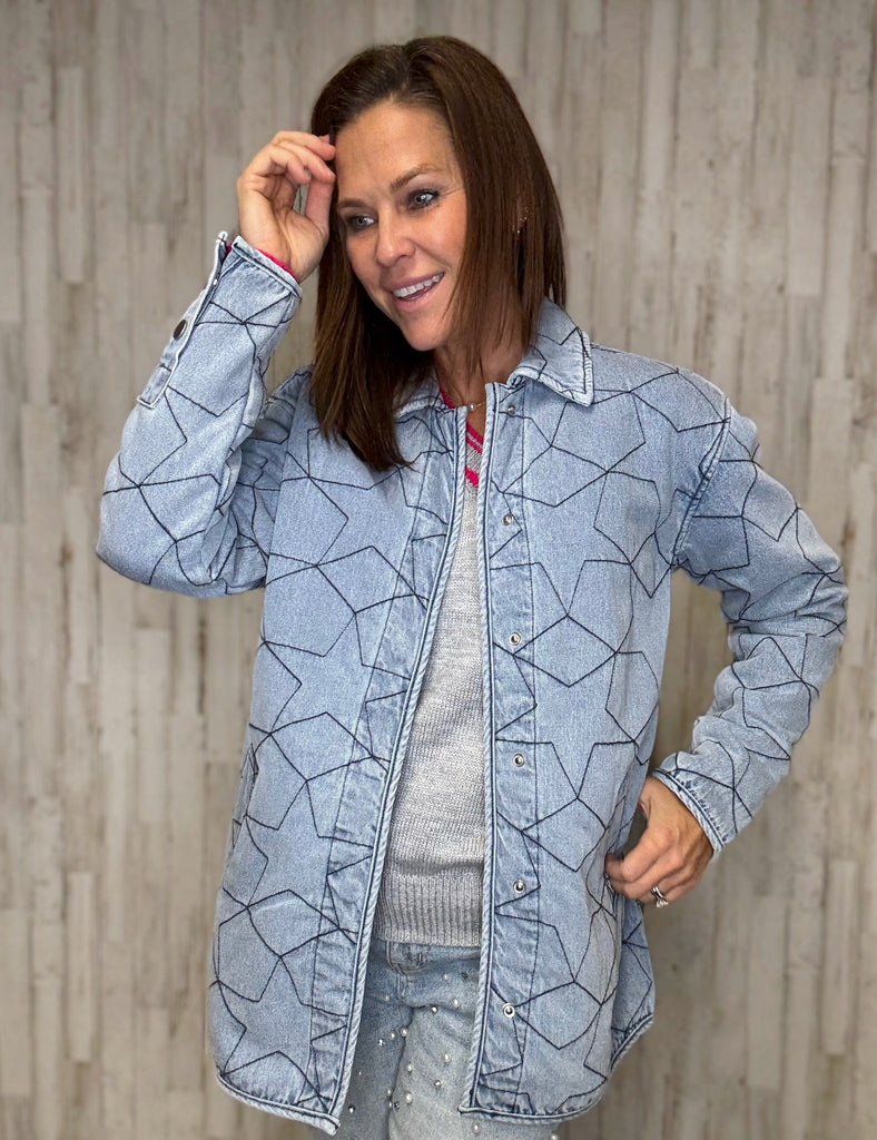 Astros Splatter Paint Denim Shacket