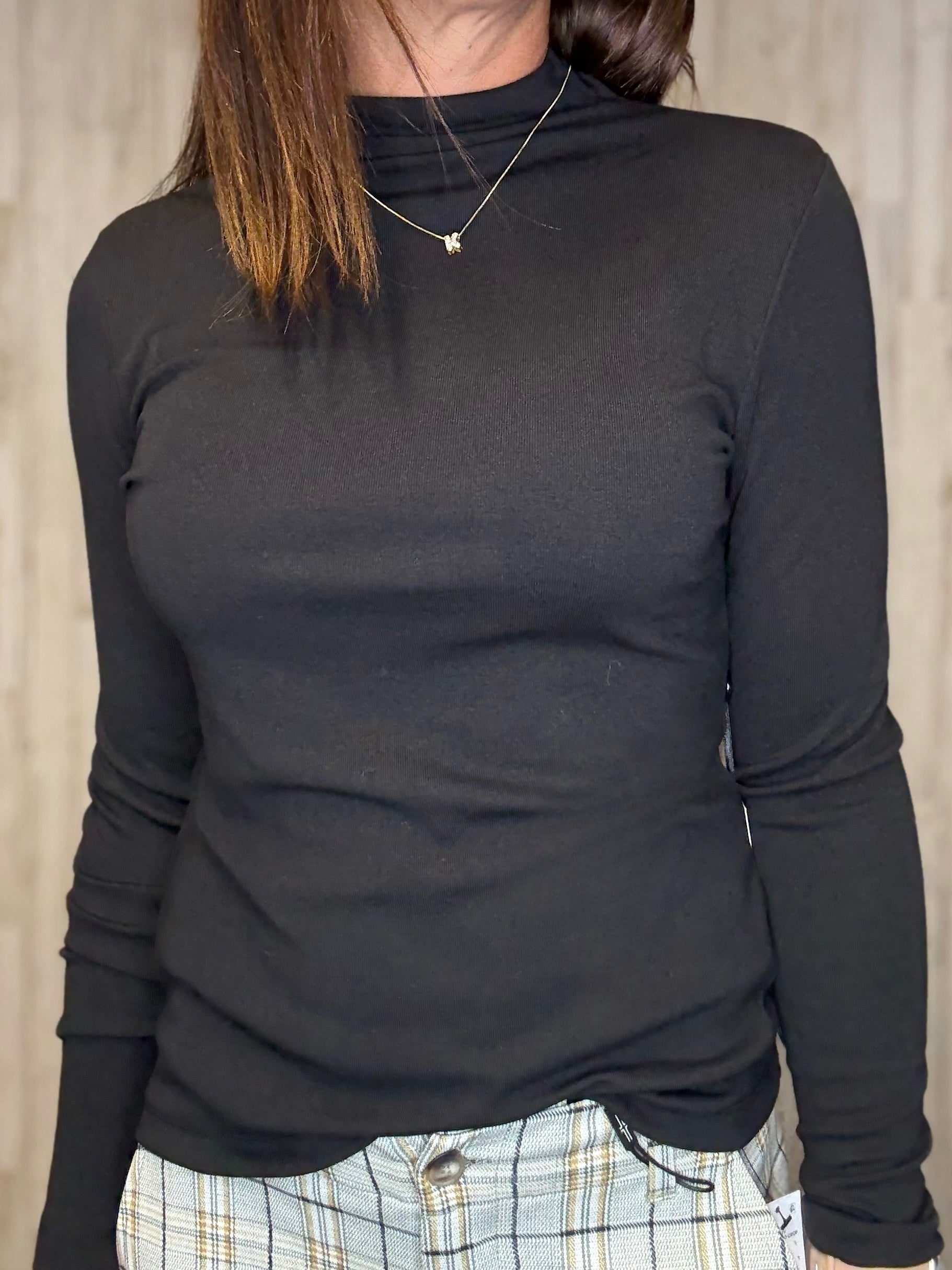 Elevate your wardrobe with the Cari Long Sleeve Top, featuring a sleek mock neck and finely ribbed texture for refined comfort. Its tailored fit and timeless black and sesame color make it perfect for layering or wearing alone, effortlessly transitioning from day to evening with understated elegance.