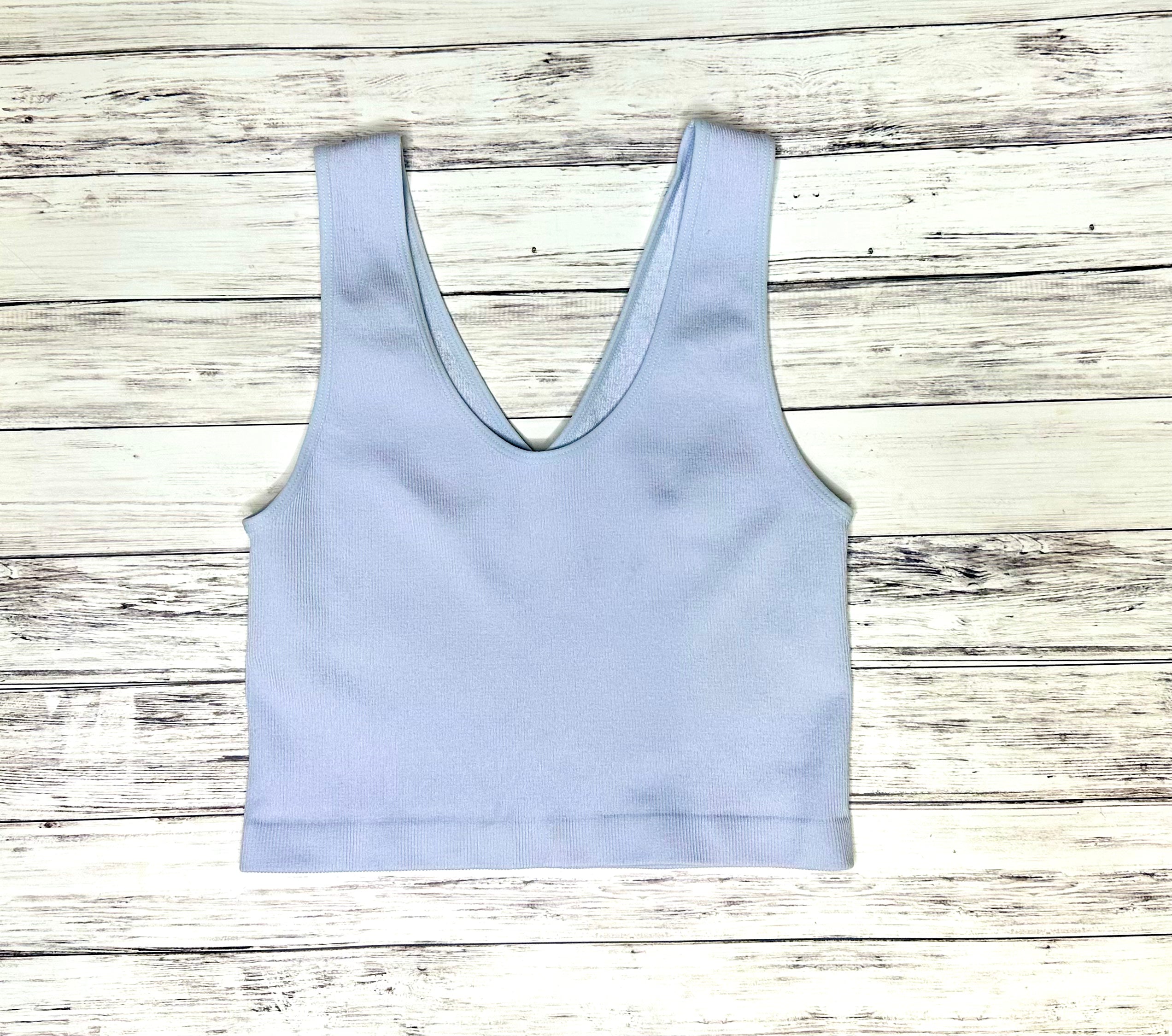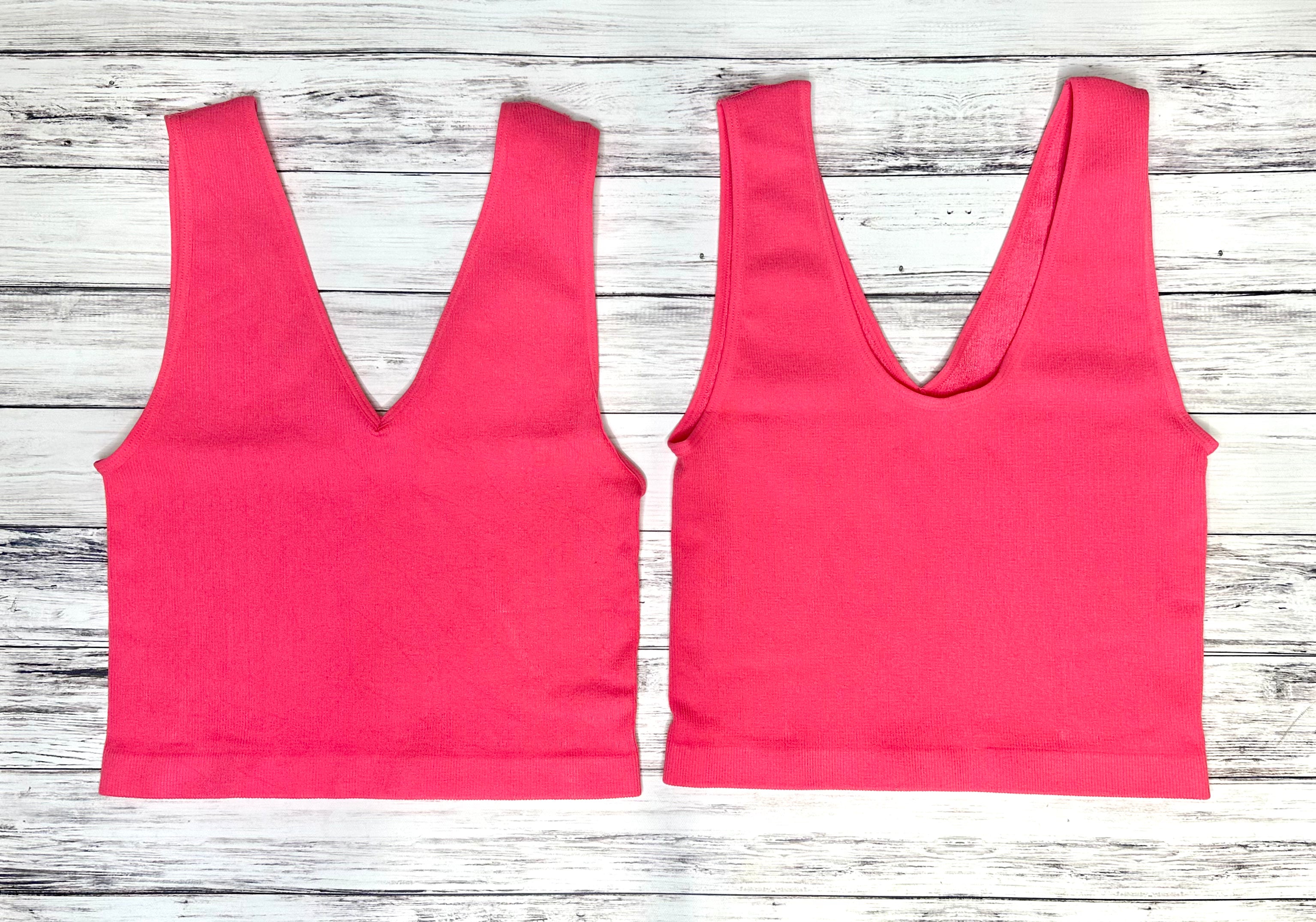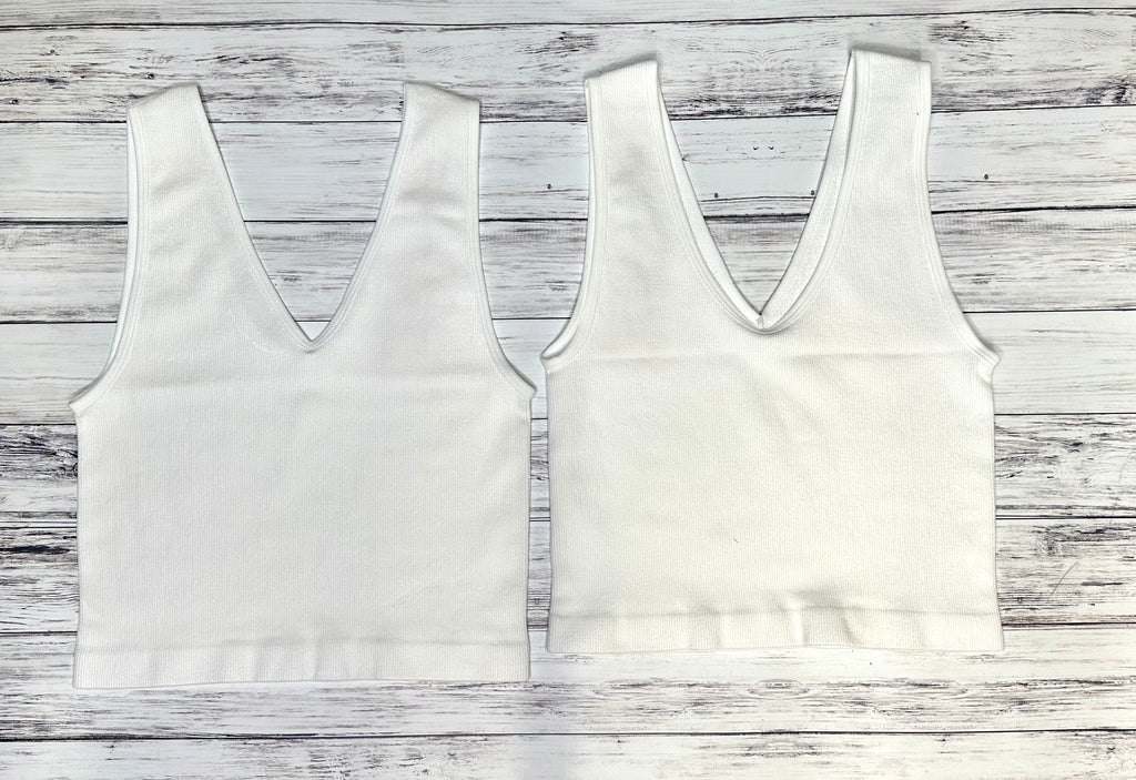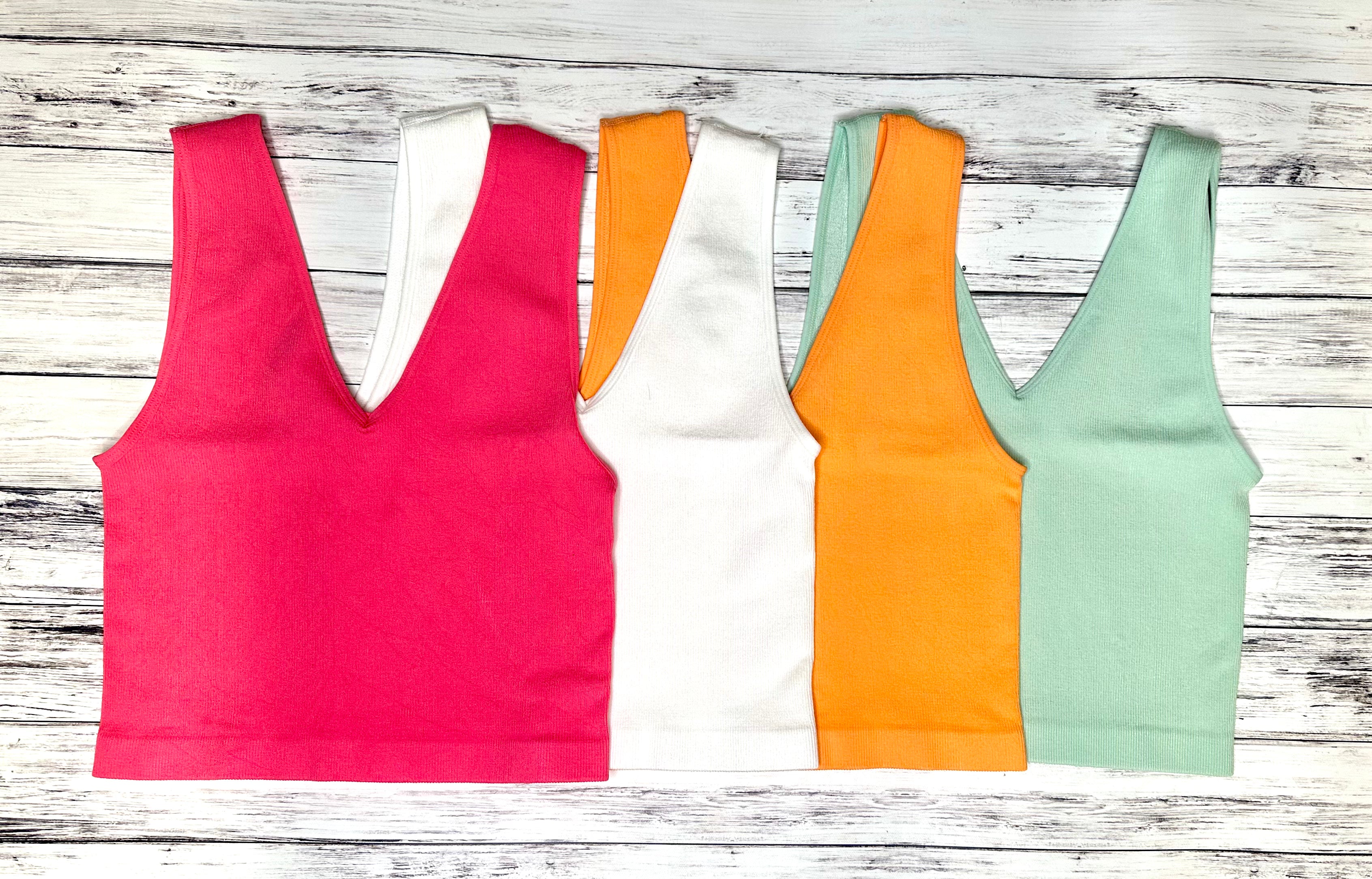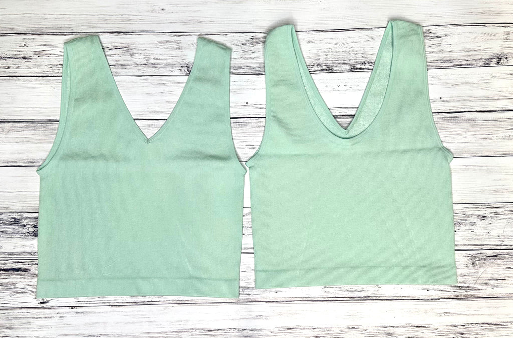 This soft seamless finely ribbed scoop crop tank from By Together is such a hot top.  Pair this with leggings, jeans or shorts.  Also can be worn as a layering top.