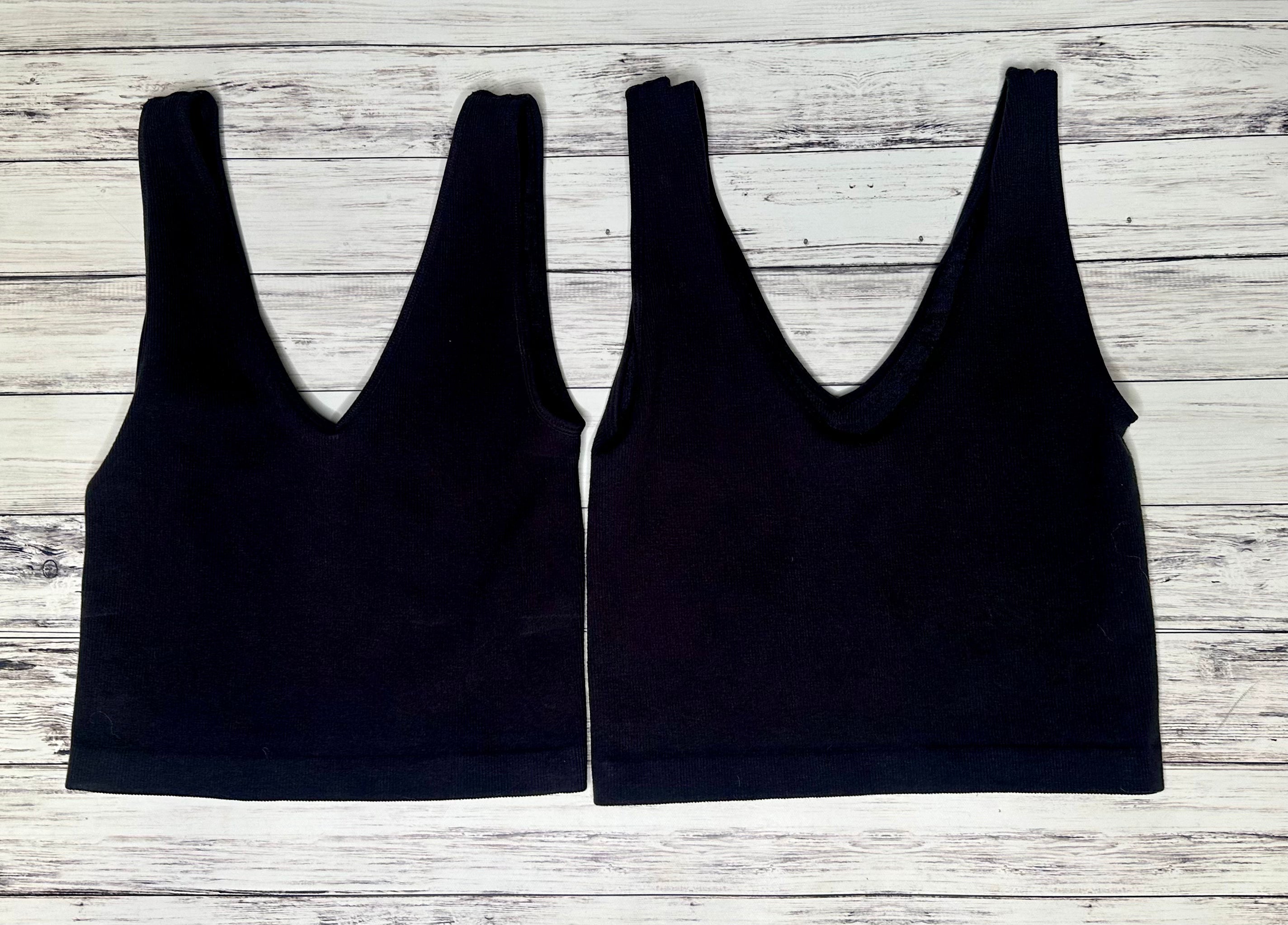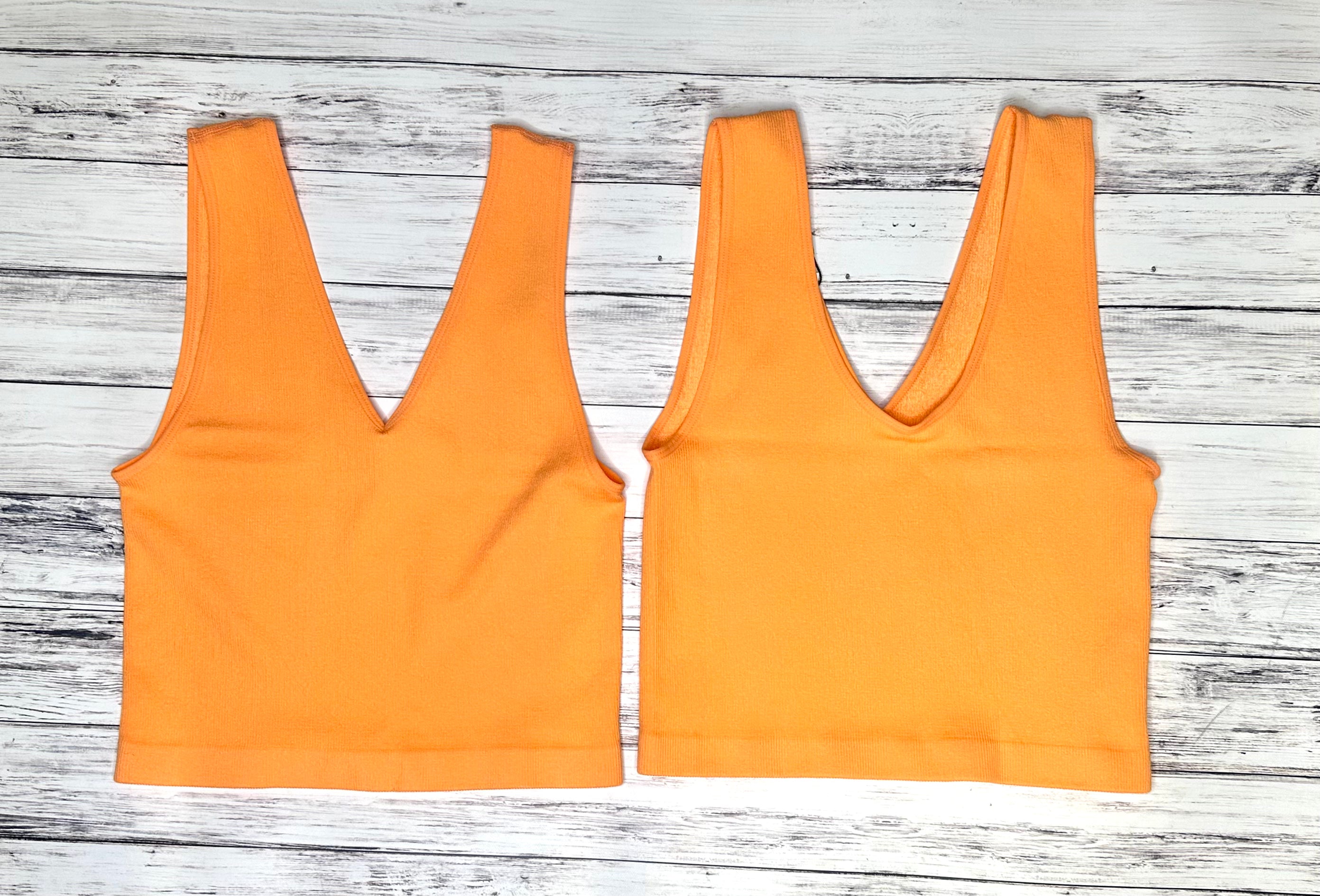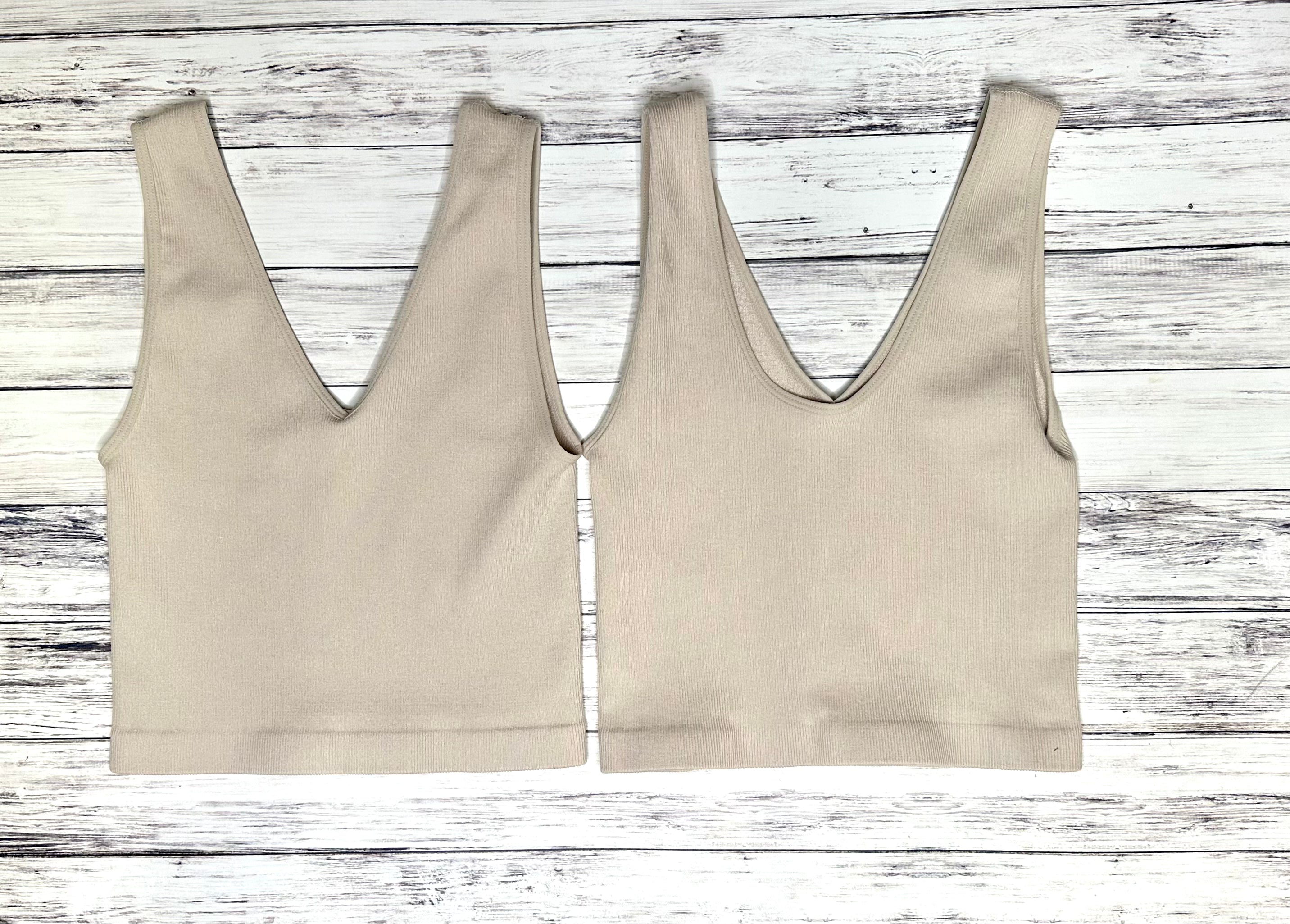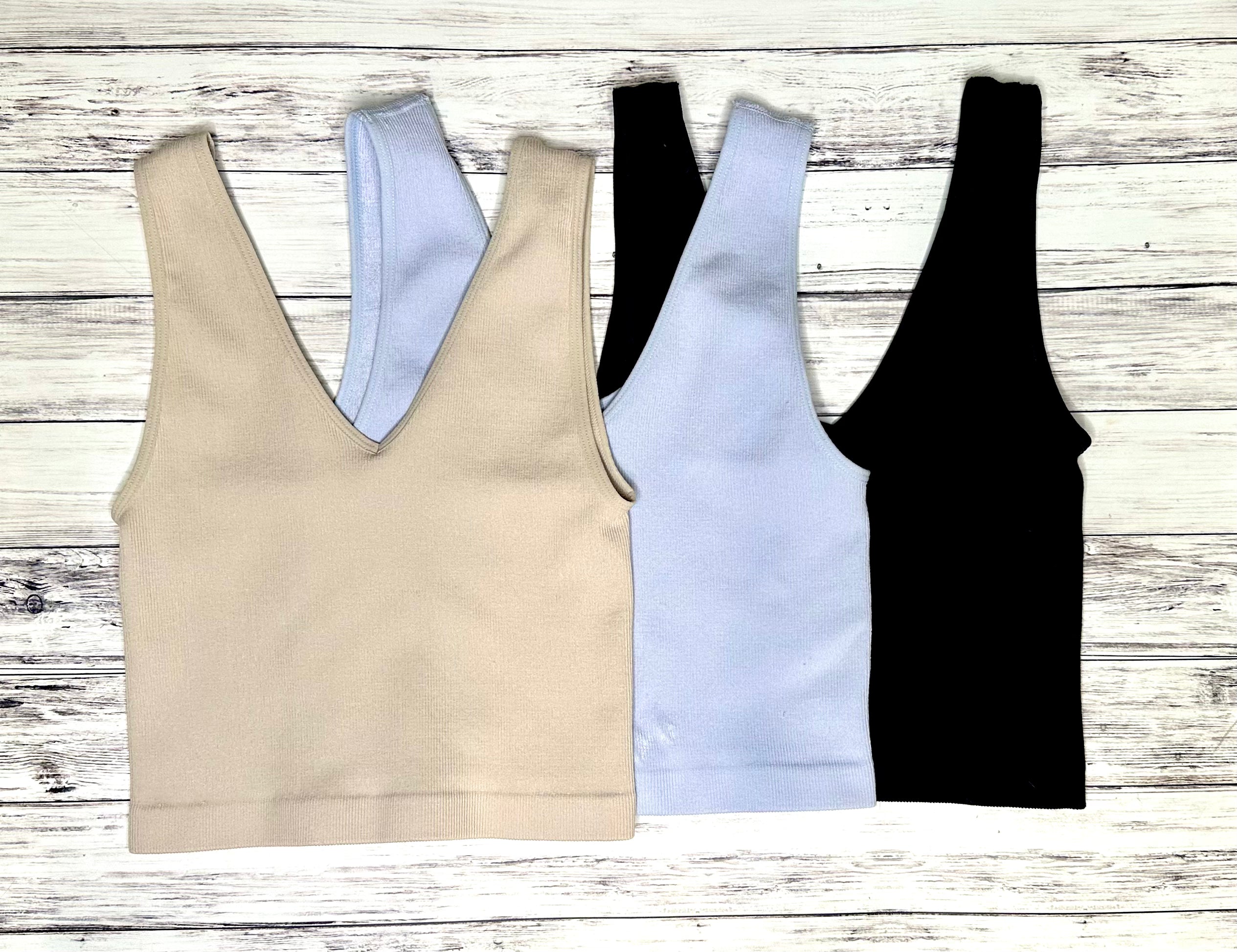 This soft seamless finely ribbed scoop crop tank from By Together is such a hot top.  Pair this with leggings, jeans or shorts.  Also can be worn as a layering top.