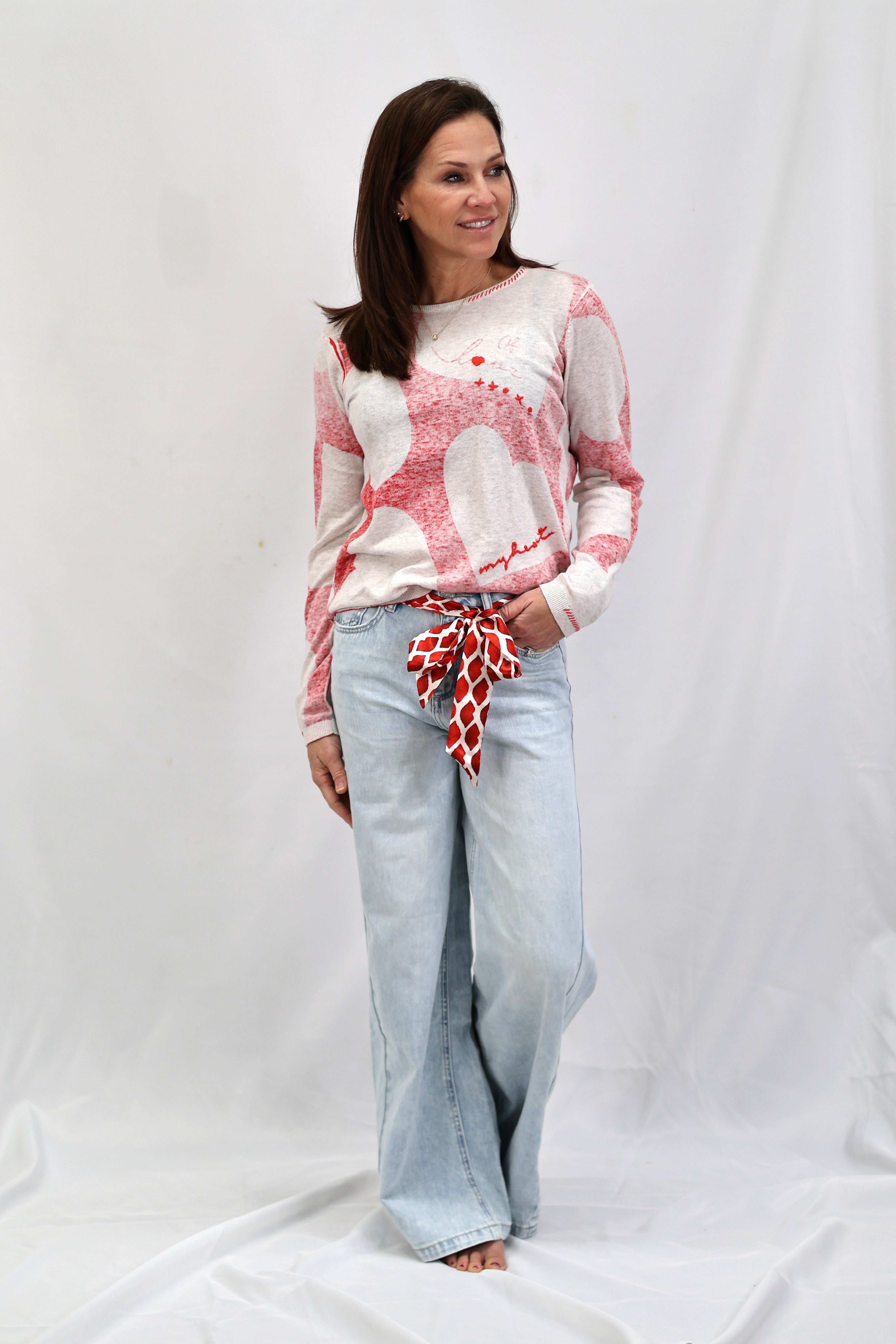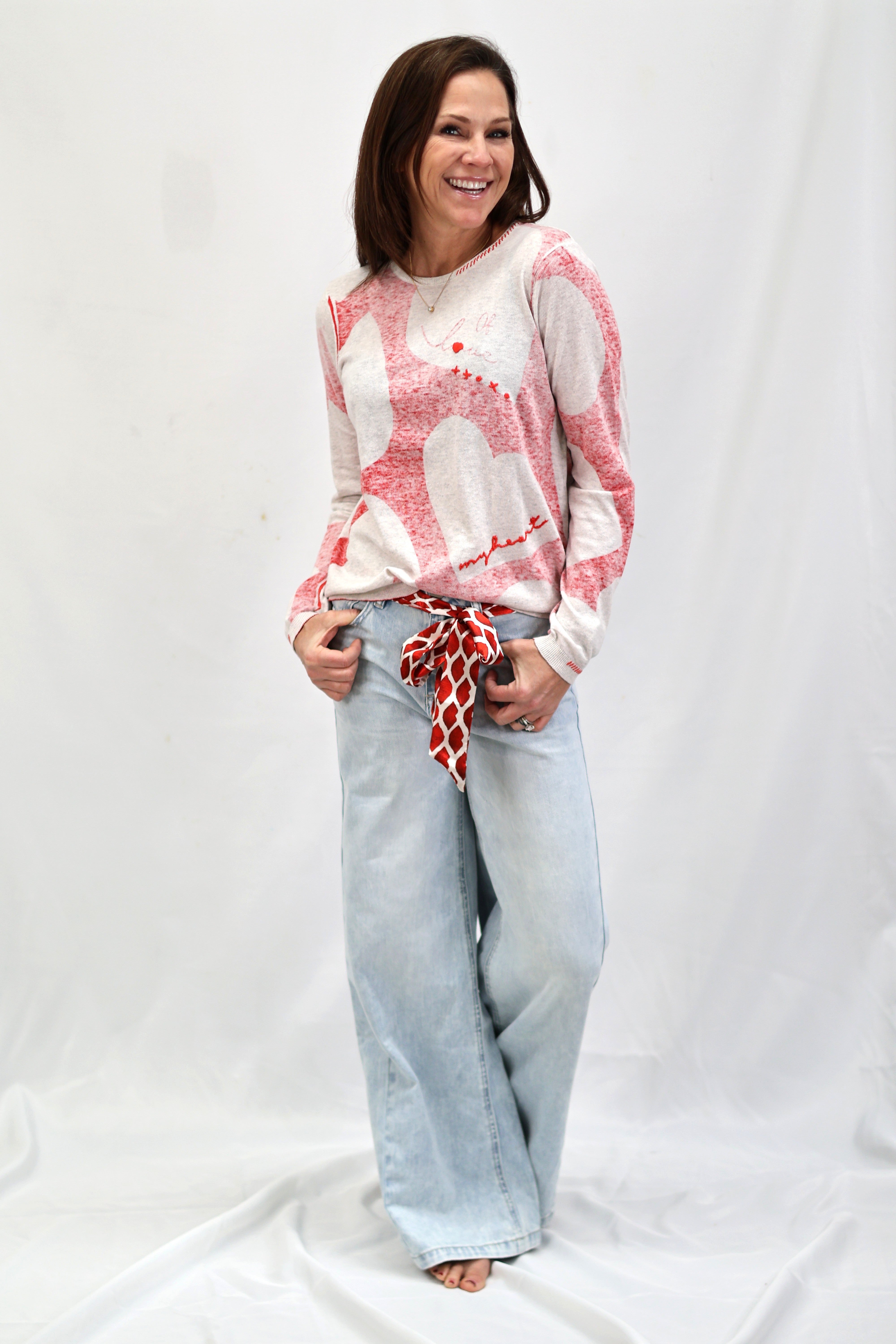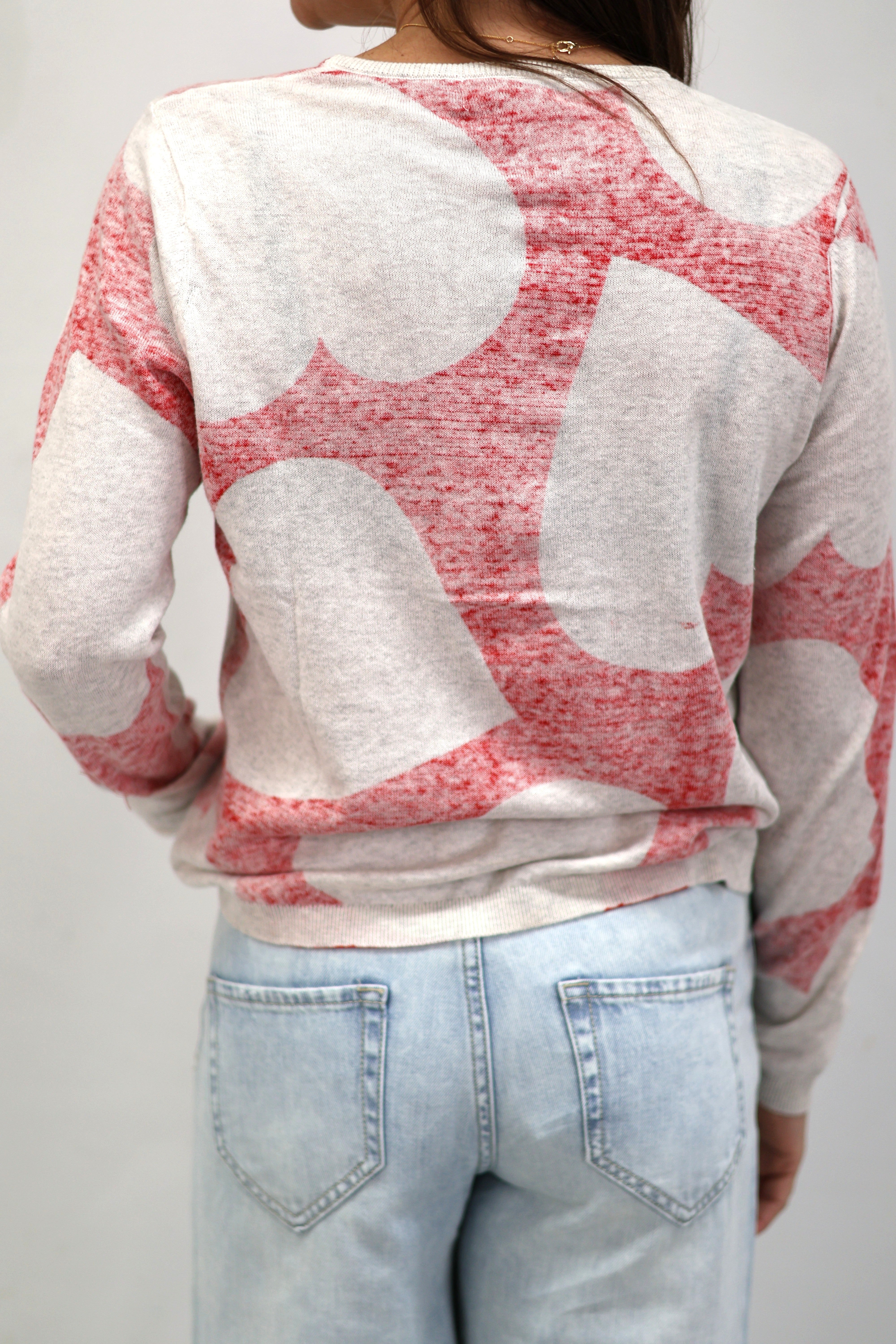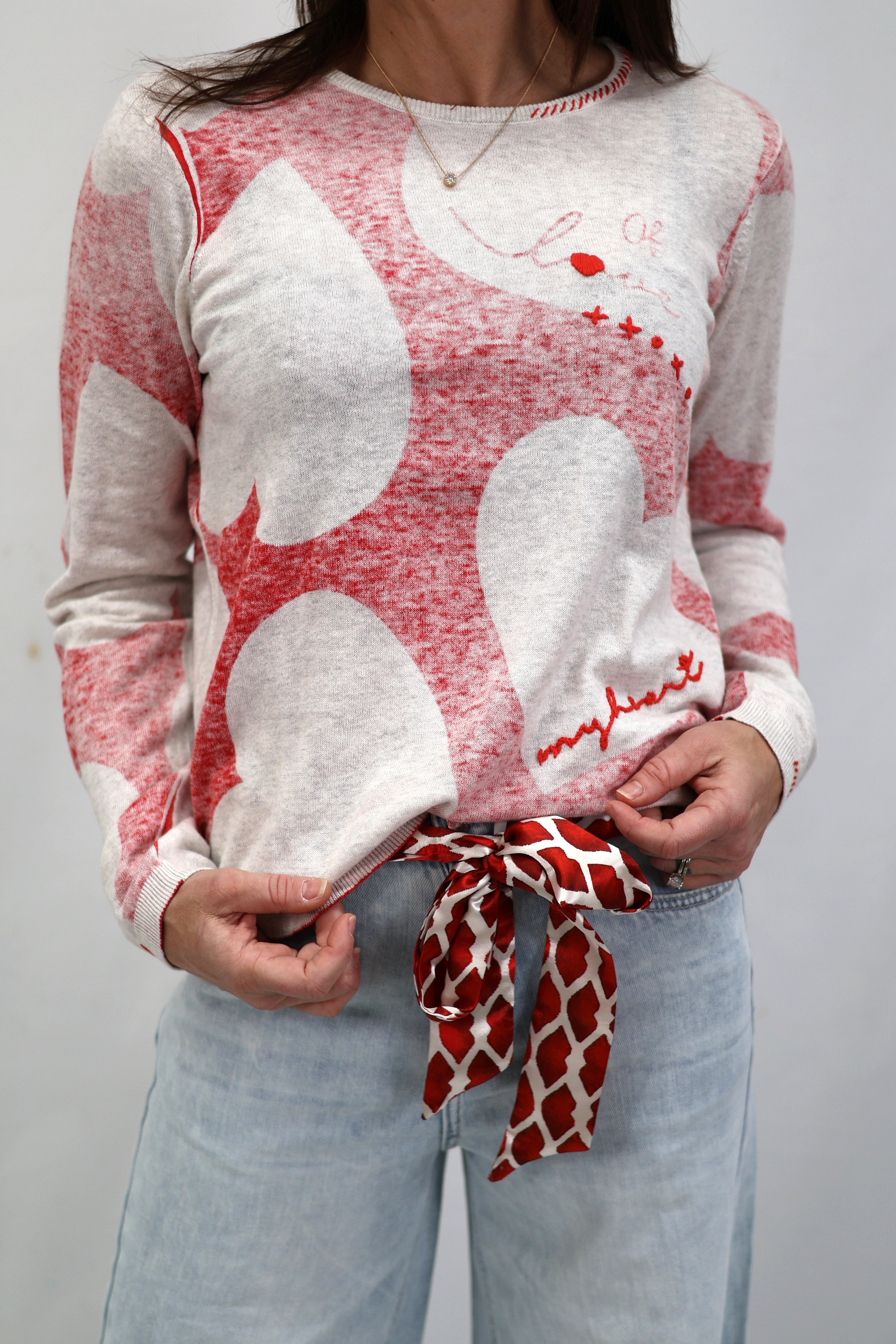 Wrap yourself in the sweetest vibes with this charming long sleeve sweater top! Featuring a classic round neckline adorned with playful hearts and XXOO symbols in bold red, this piece celebrates love and affection in the most delightful way. Perfect for expressing your romantic side or spreading good feelings year-round, it's a cozy essential that brings warmth and whimsy to any casual outfit. Whether you're heading out for a coffee date or snuggling up at home, this top combines comfort with undeniable charm that'll have everyone smiling.