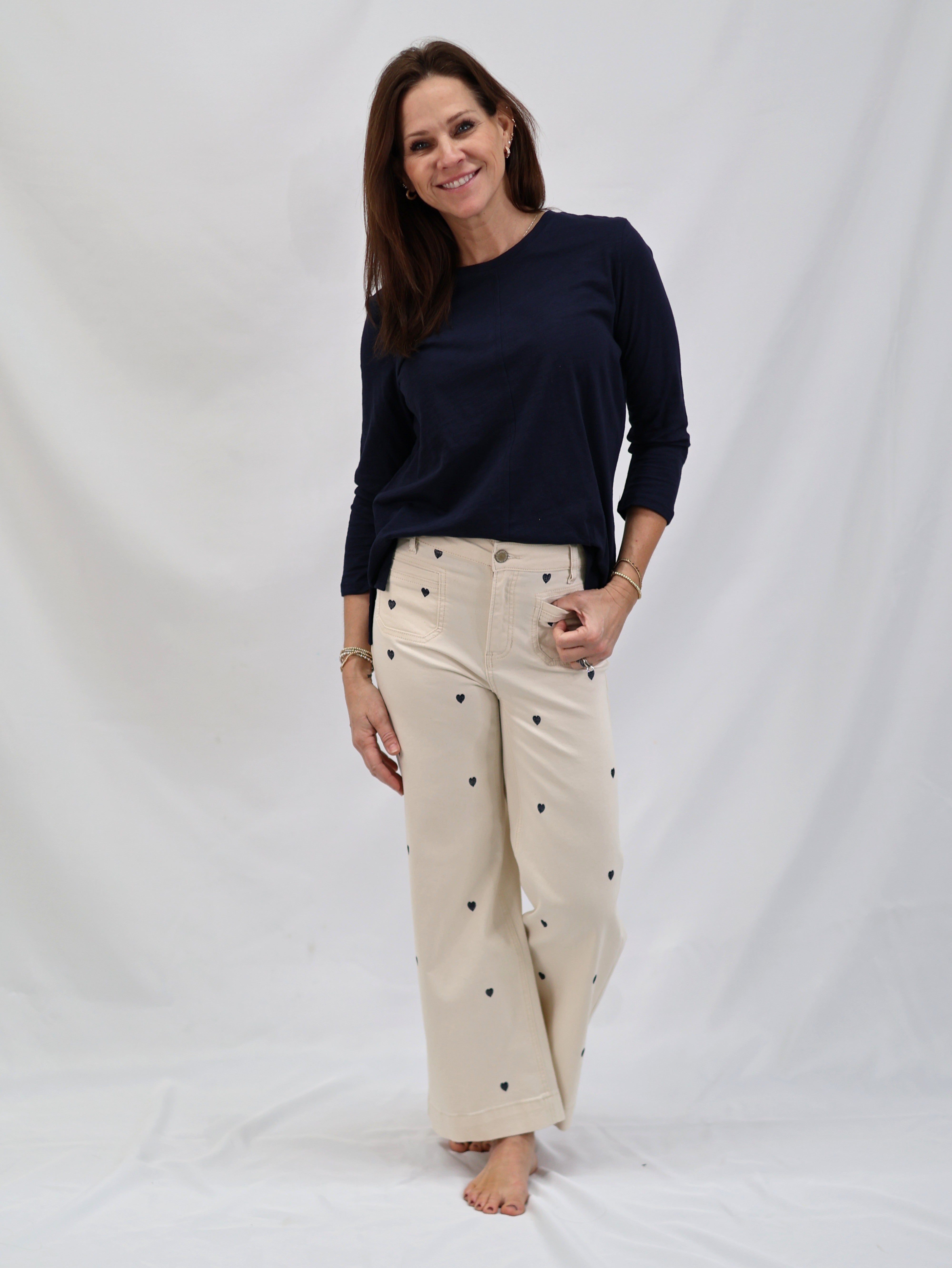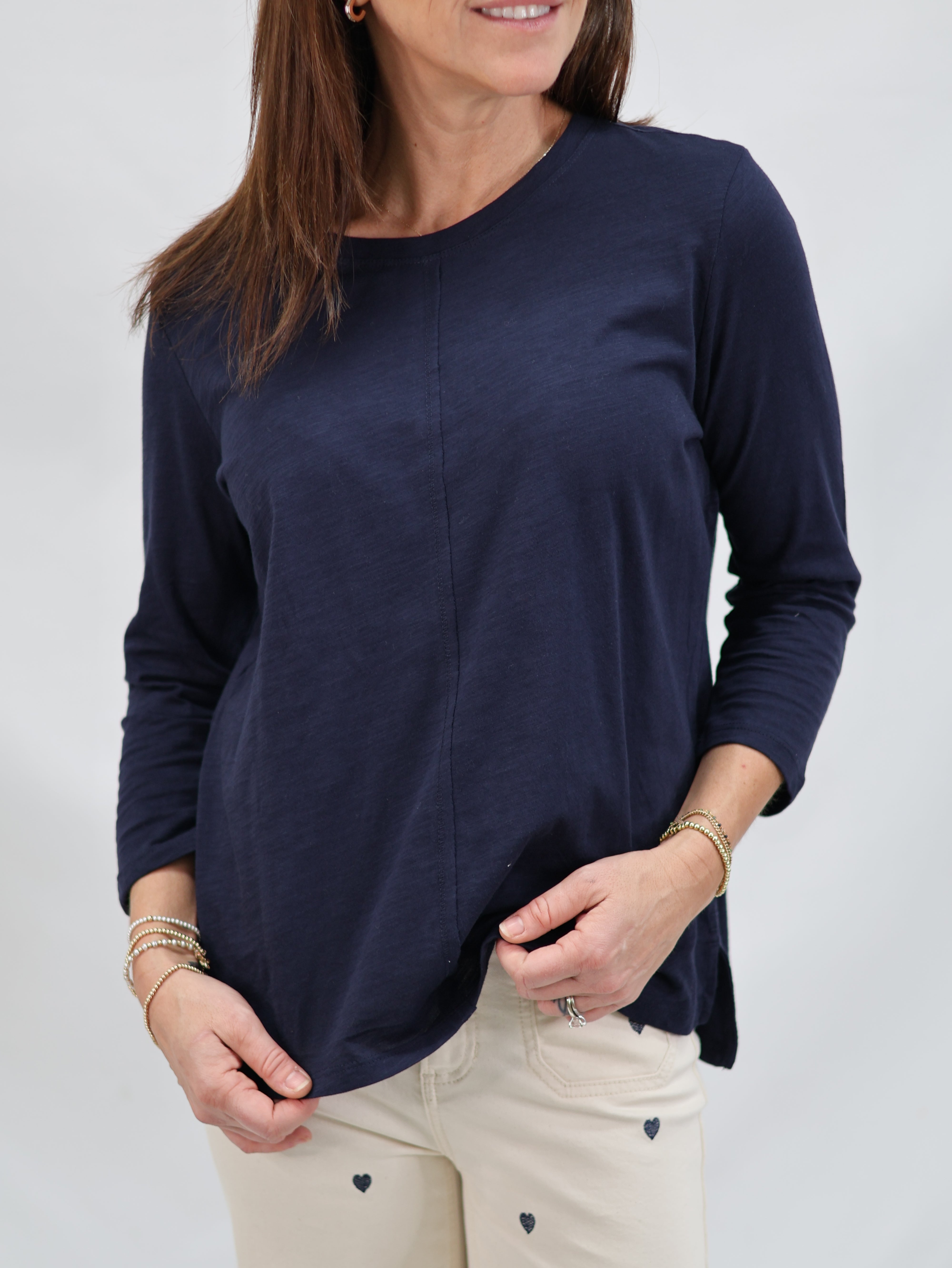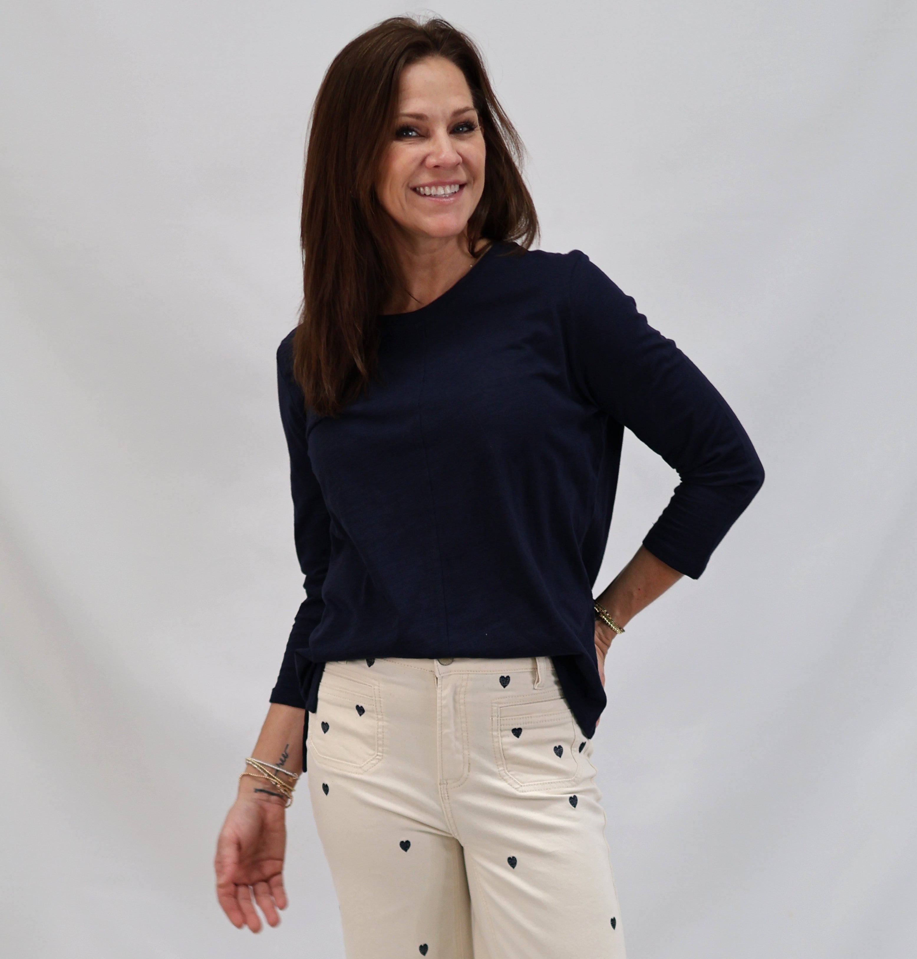 Effortlessly chic meets comfort in this navy Annapolis Jersey Top. Crafted from soft organic cotton, the three-quarter sleeves strike the perfect balance between casual and put-together—ideal for layering or wearing solo. Whether you're running errands or meeting friends for coffee, this versatile staple pairs with everything in your closet. Breathable, gentle on skin, and kind to the planet, it's the go-to piece you'll reach for again and again.