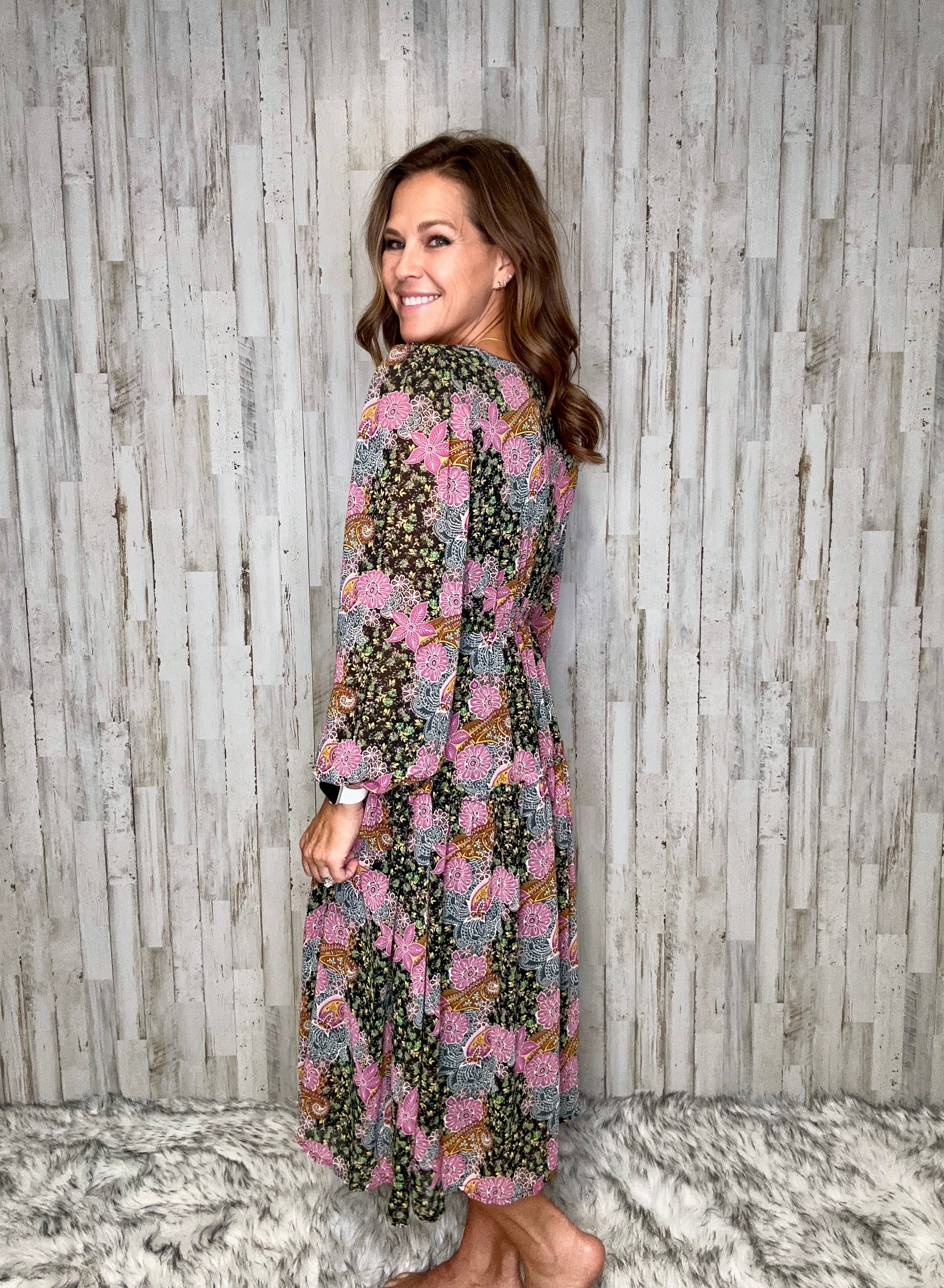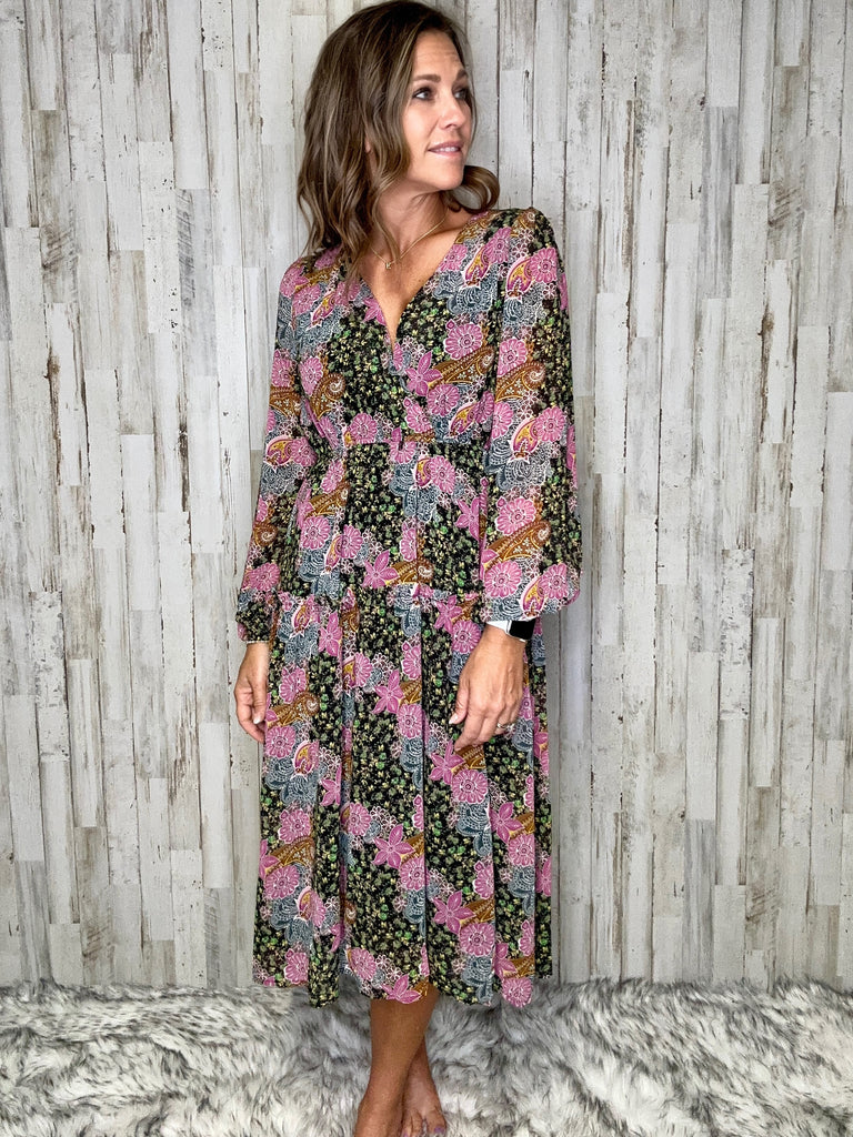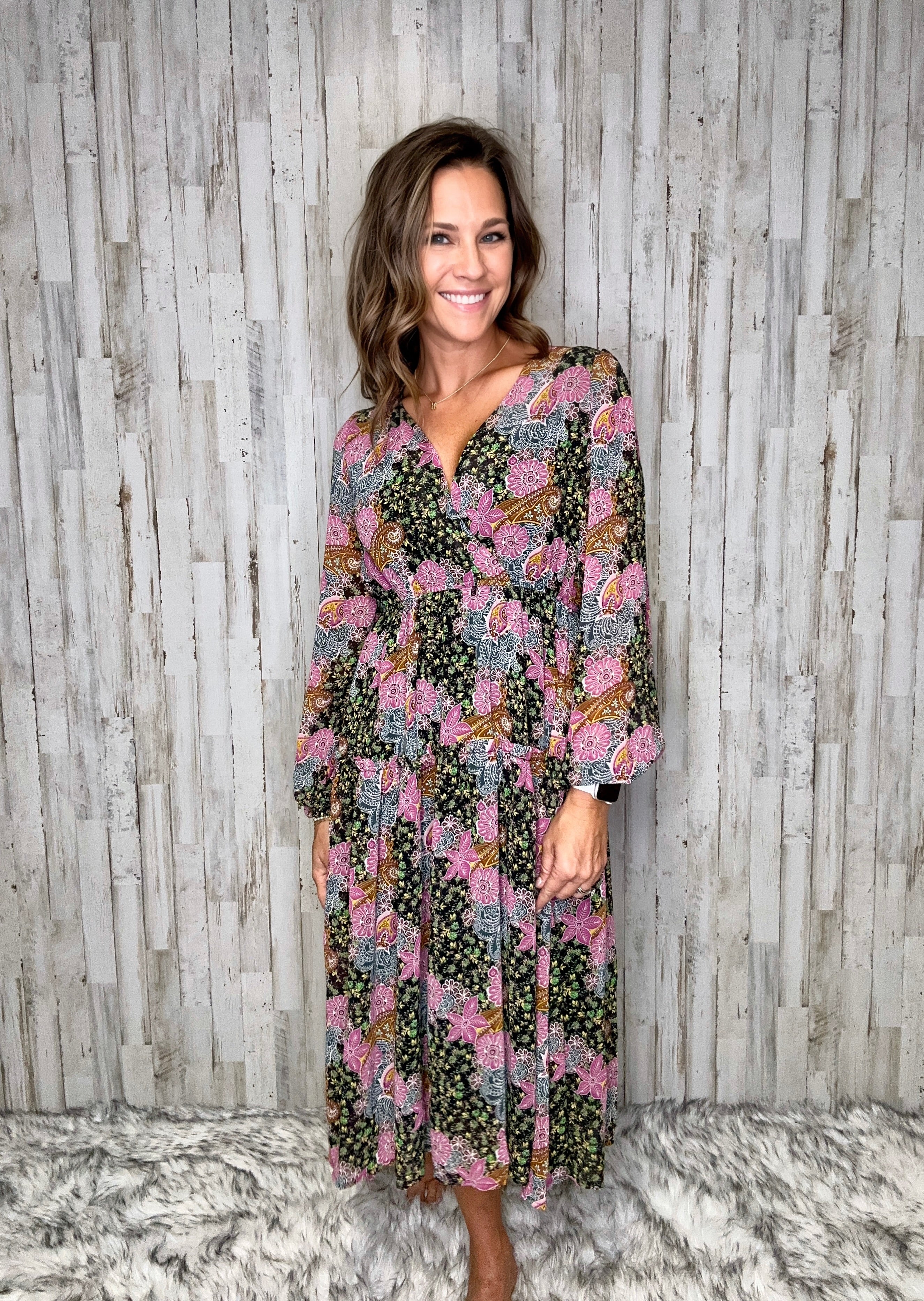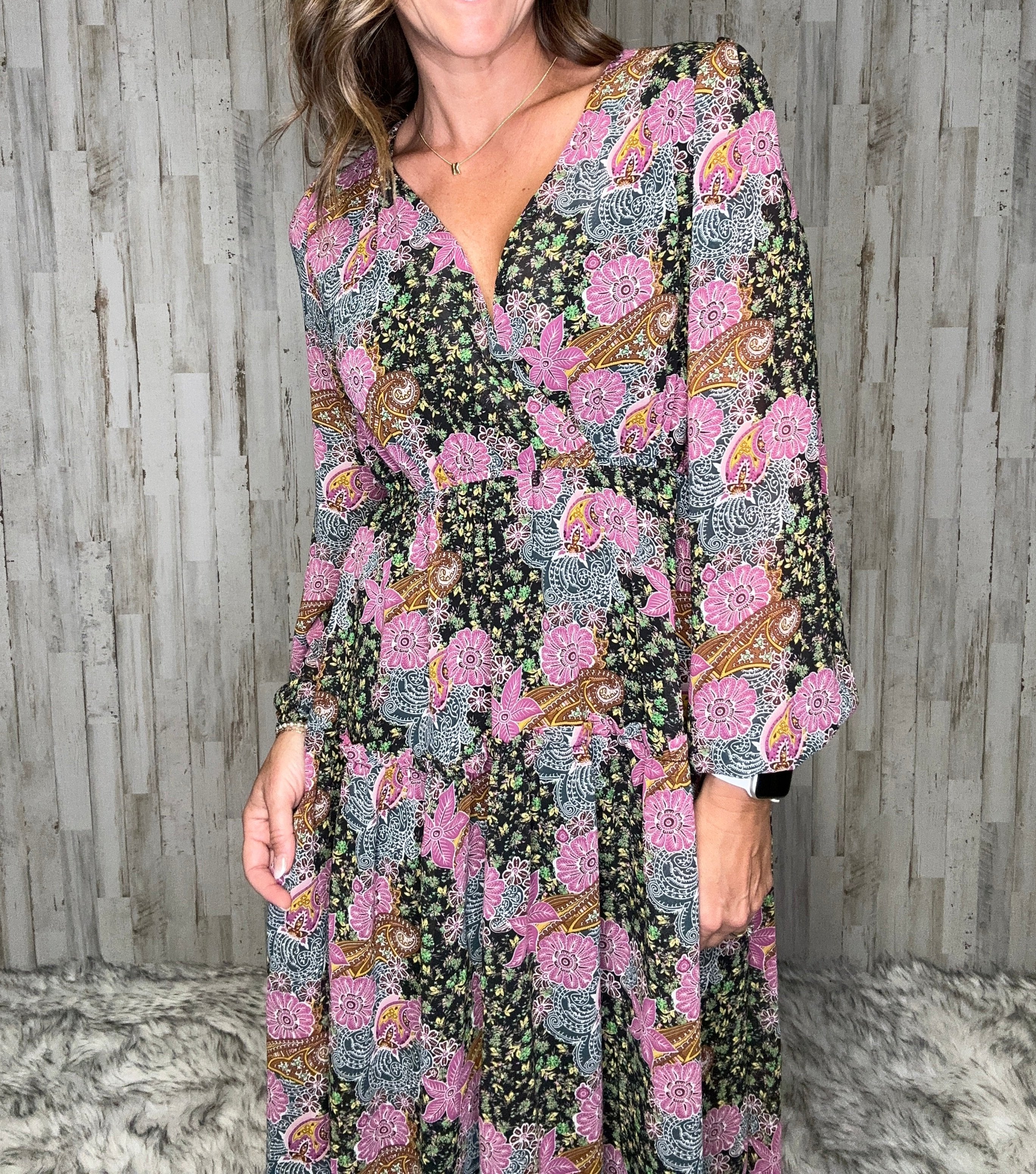 Get ready to make a statement with Carmel, the V-Neck Cross Over Long Sleeve Tiered Maxi Lined Dress. With its elegant v-neck design and stylish tiered layers, this dress is sure to turn heads. Its long sleeves provide comfort and coverage, making it perfect for any occasion. Step out in style with Carmel!