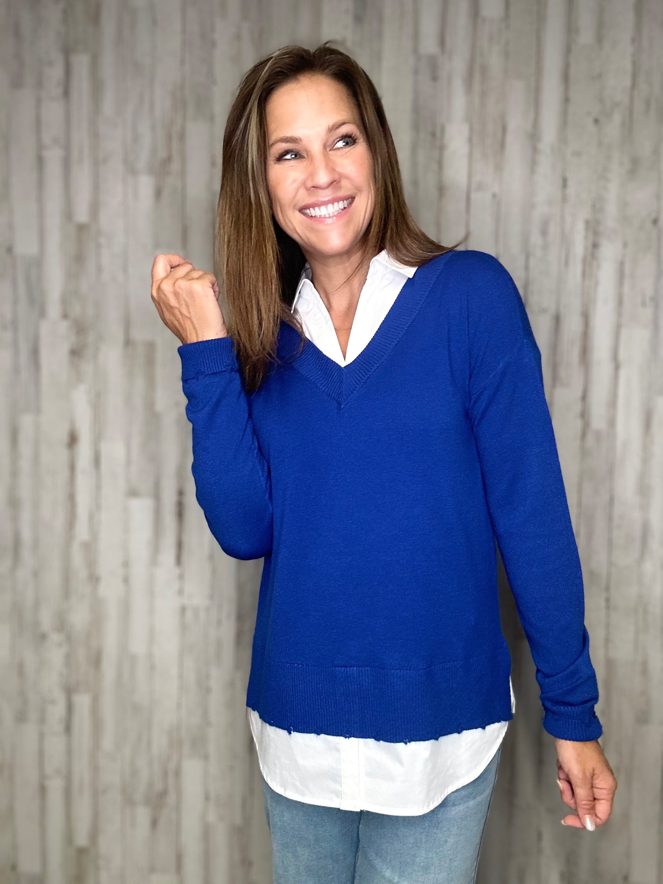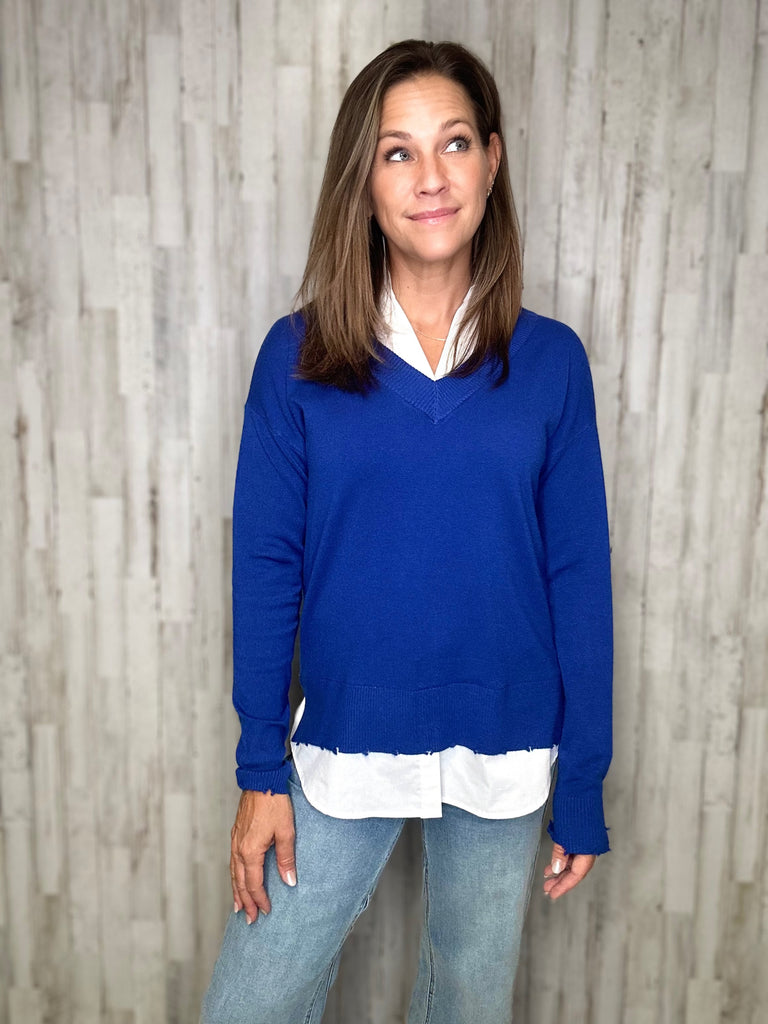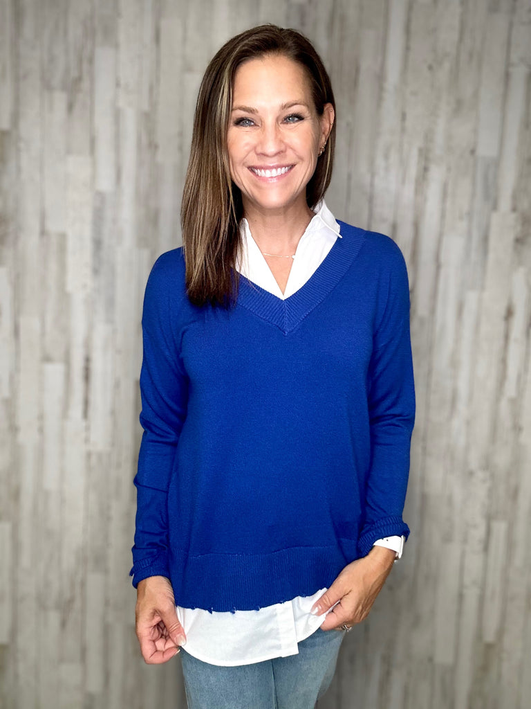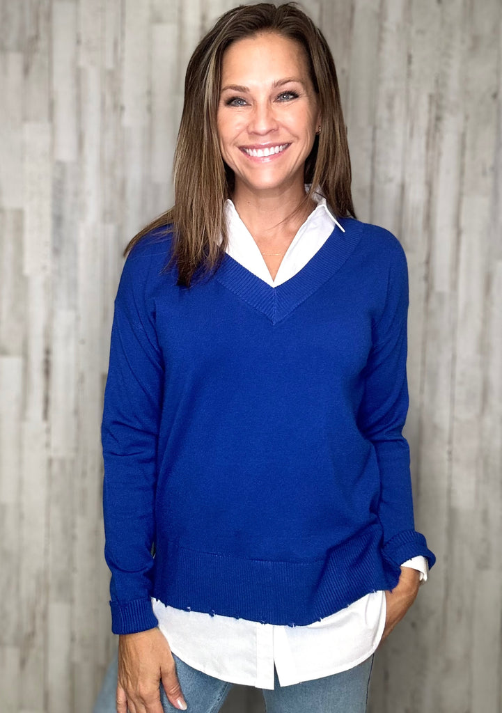 Unleash your daring side with our Carolina sweater! Featuring a deep V-neck, long sleeves, and a round shirt collar in a bold sapphire blue. The shirt tail adds a touch of elegance, making it perfect for any adventure. Conquer the day in style with Carolina!