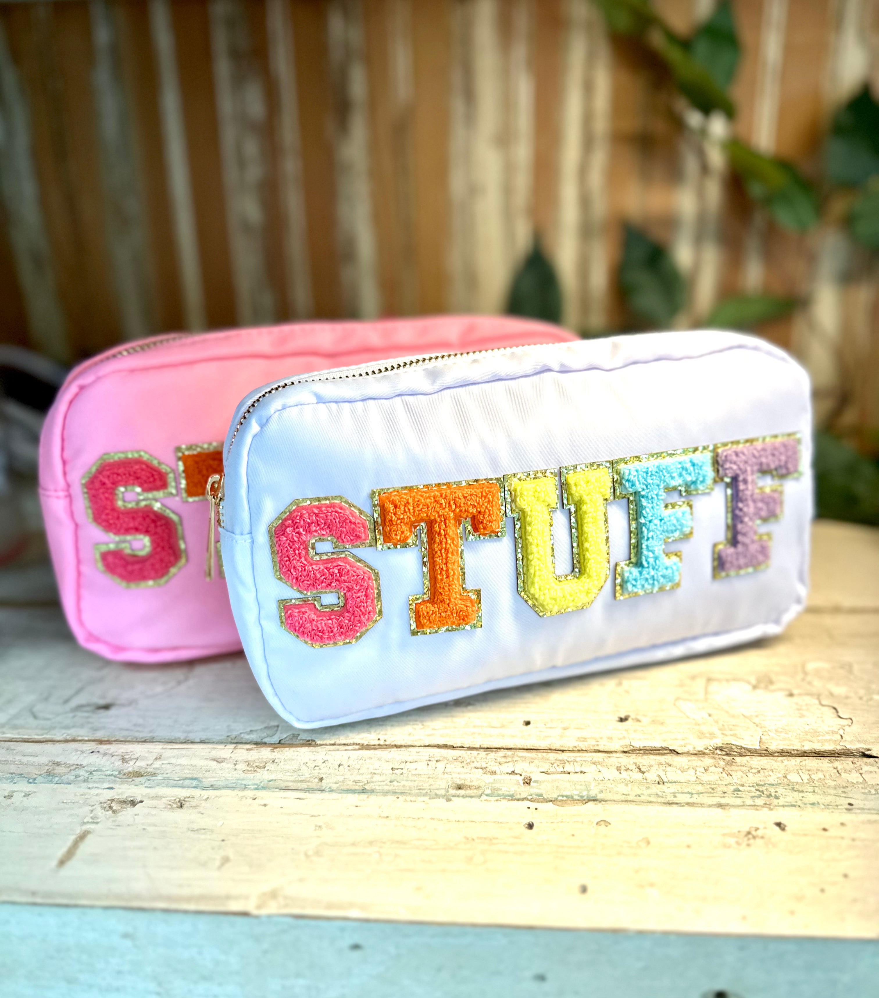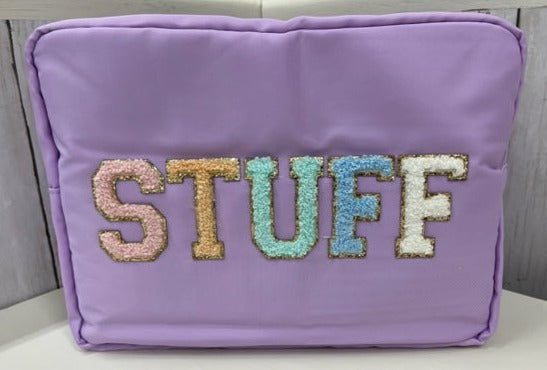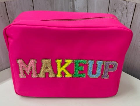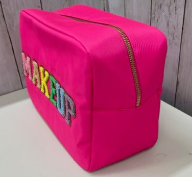 These carry all pouches are great for so many things! Cosmetics, toiletries, etc. and are easy to grab and go! A variety of colors with chenille letters: