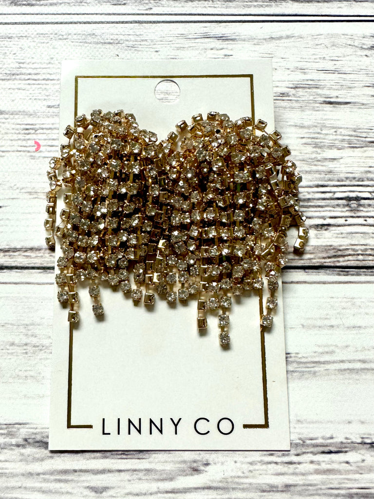 - Gold plated, anti-tarnish, stainless steel post. CZ chain accents.