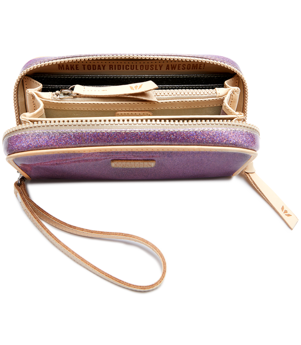 This accessory is functional for everyday use on its own or great for organization inside a larger bag. The Wristlet Wallet expands when unzipped to allow ample space for card organization and can be held by the included wristlet strap.