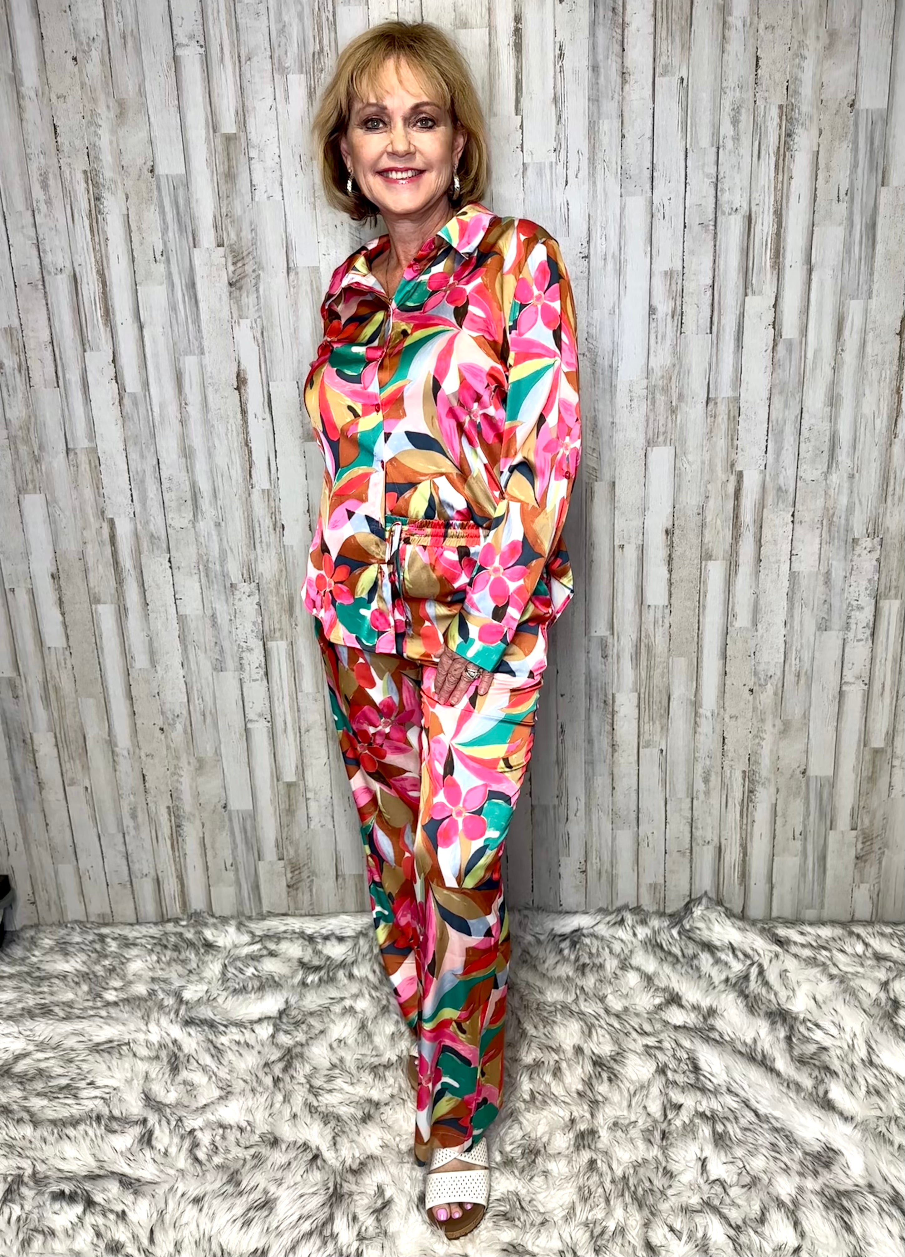 Get ready to set sail in style with our Cruising for the Islands Top by Charlie B! This long sleeve button down is made from lightweight silky material, perfect for breezy days on the beach. Its colorful floral design will have you feeling like a tropical dream. Don't forget to complete the look with the matching pants!
