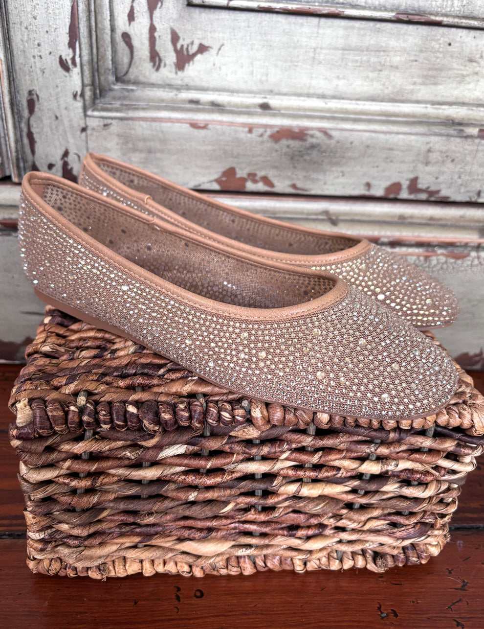 These are an elegant slip-on ballet flats adorned with sparkling rhinestones. They feature a sleek, rounded toe design and a soft, cushioned insole for comfort. The shoes are perfect for adding a touch of glamour to casual or formal outfits, suitable for events like parties, weddings, or everyday wear when paired with leggings, dresses, or jeans.