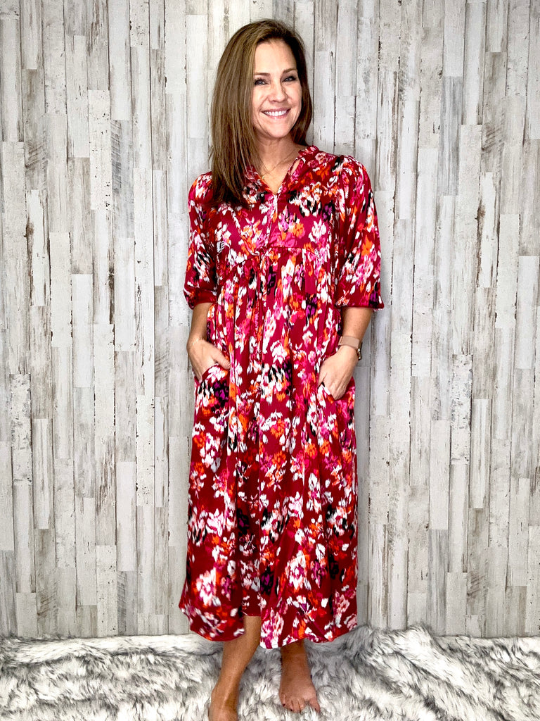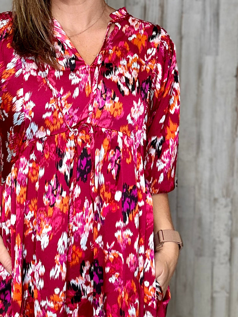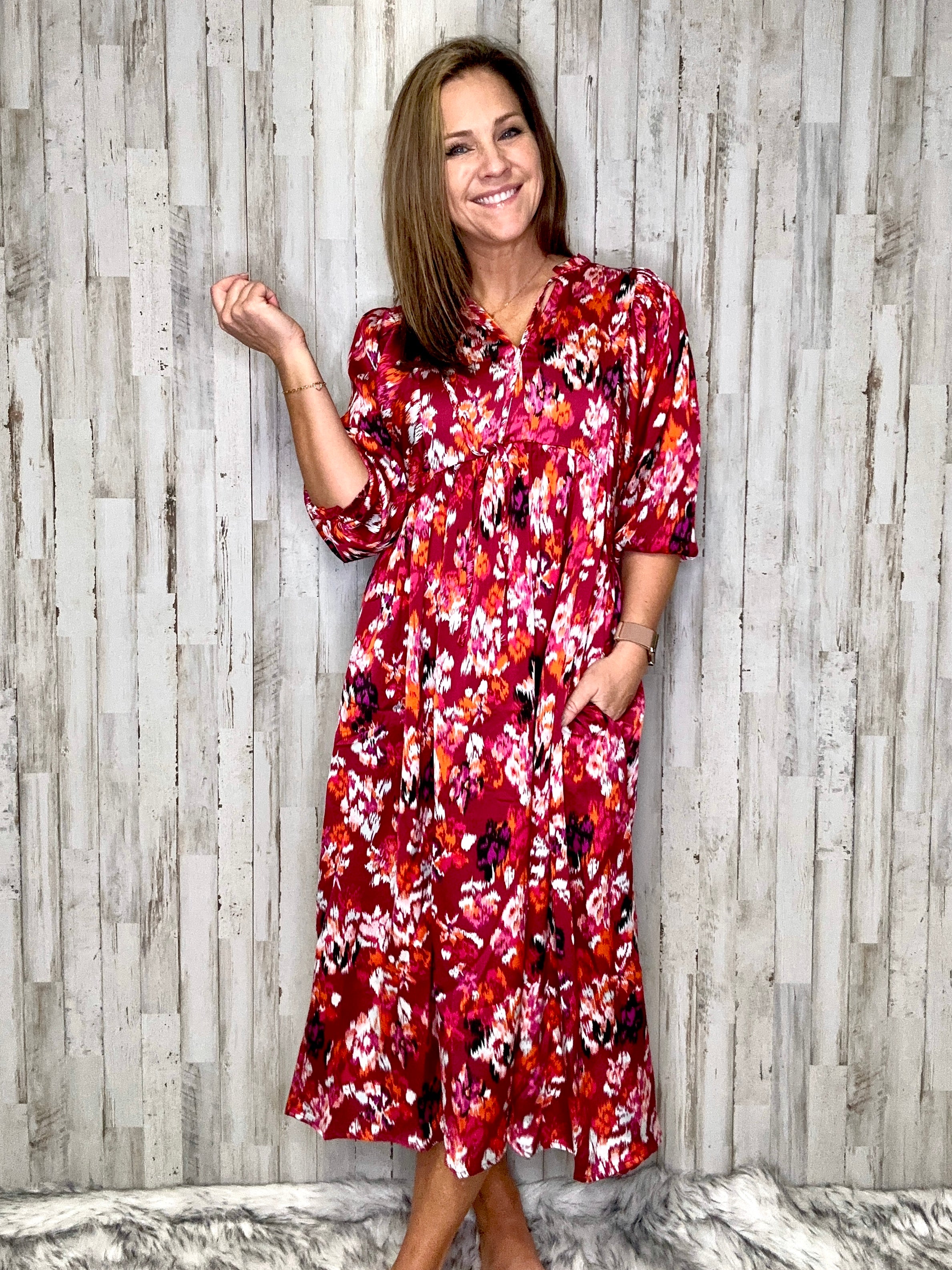 Crafted with a soft ribbed knit and featuring a round neckline, flattering 3/4 length sleeves, and elegant side slits, the Pembrooke Knit Dress exudes timeless sophistication. A high-low hem in magenta creates a luxurious look that is sure to garner compliments.