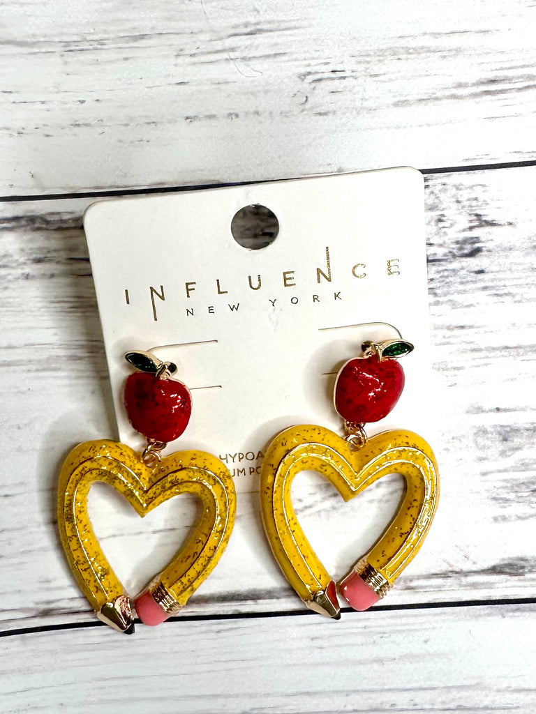 Live your best teacher life with these adorable heart-shaped pencil earrings.