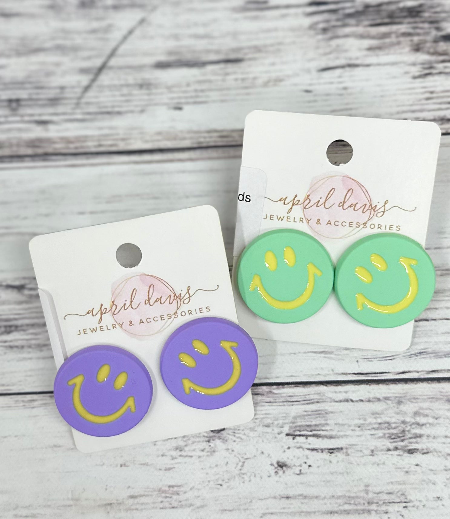 Show off your sunny personality with these Smiley Color Studs! Round and stylish, these little gems come in an eye-catching combination of lavender and pistachio - sure to brighten up any look. Have a ball with your fashion!